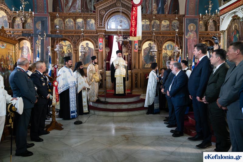 Στη Δοξολογία προεξείχε ο Μητροπολίτης Κεφαλληνίας κ. Δημήτριος, πλαισιωμένος από πλήθος ιερέων.