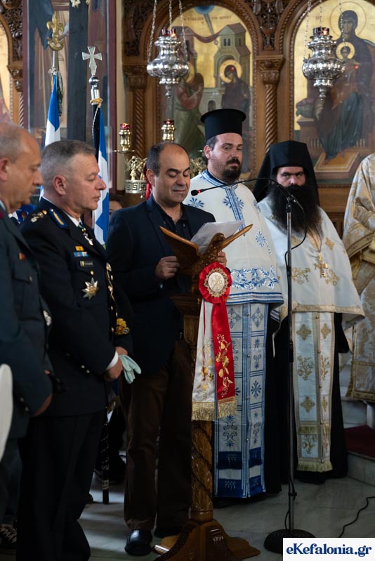Τον πανηγυρικό της Ημέρας εκφώνησε ο εκπαιδευτικός κ. Γεώργιος Ματαράγκας, Φιλόλογος, Αντιπρόεδρος του Διοικητικού Συμβουλίου του Συνδέσμου Φιλολόγων Κεφαλληνίας & Ιθάκης.