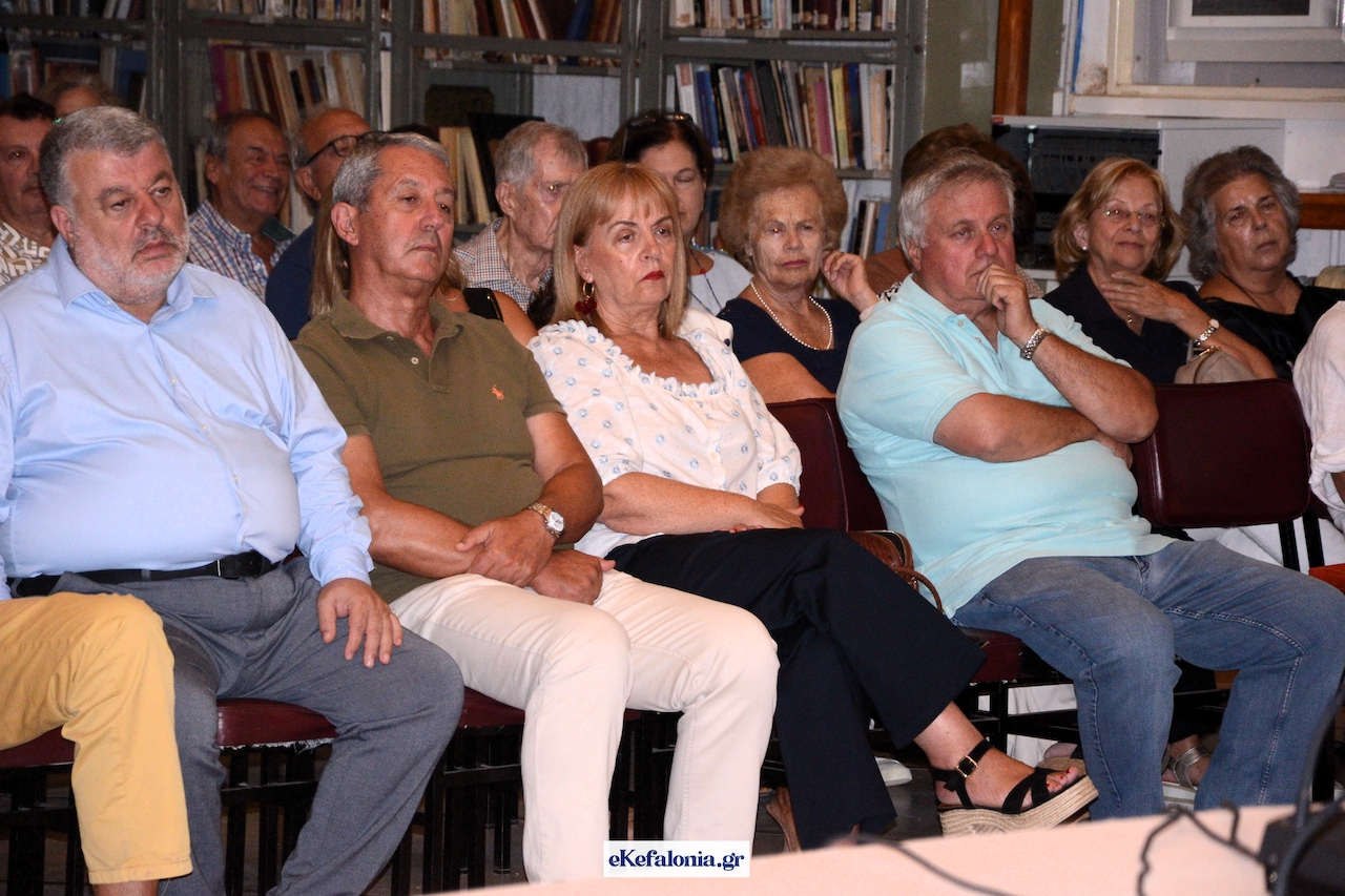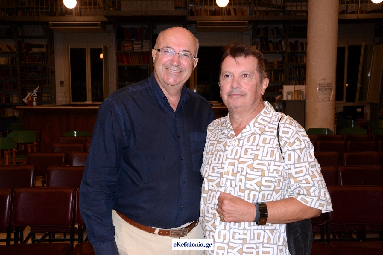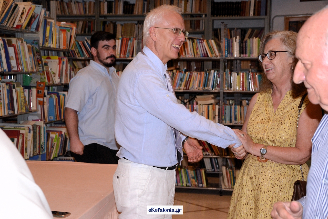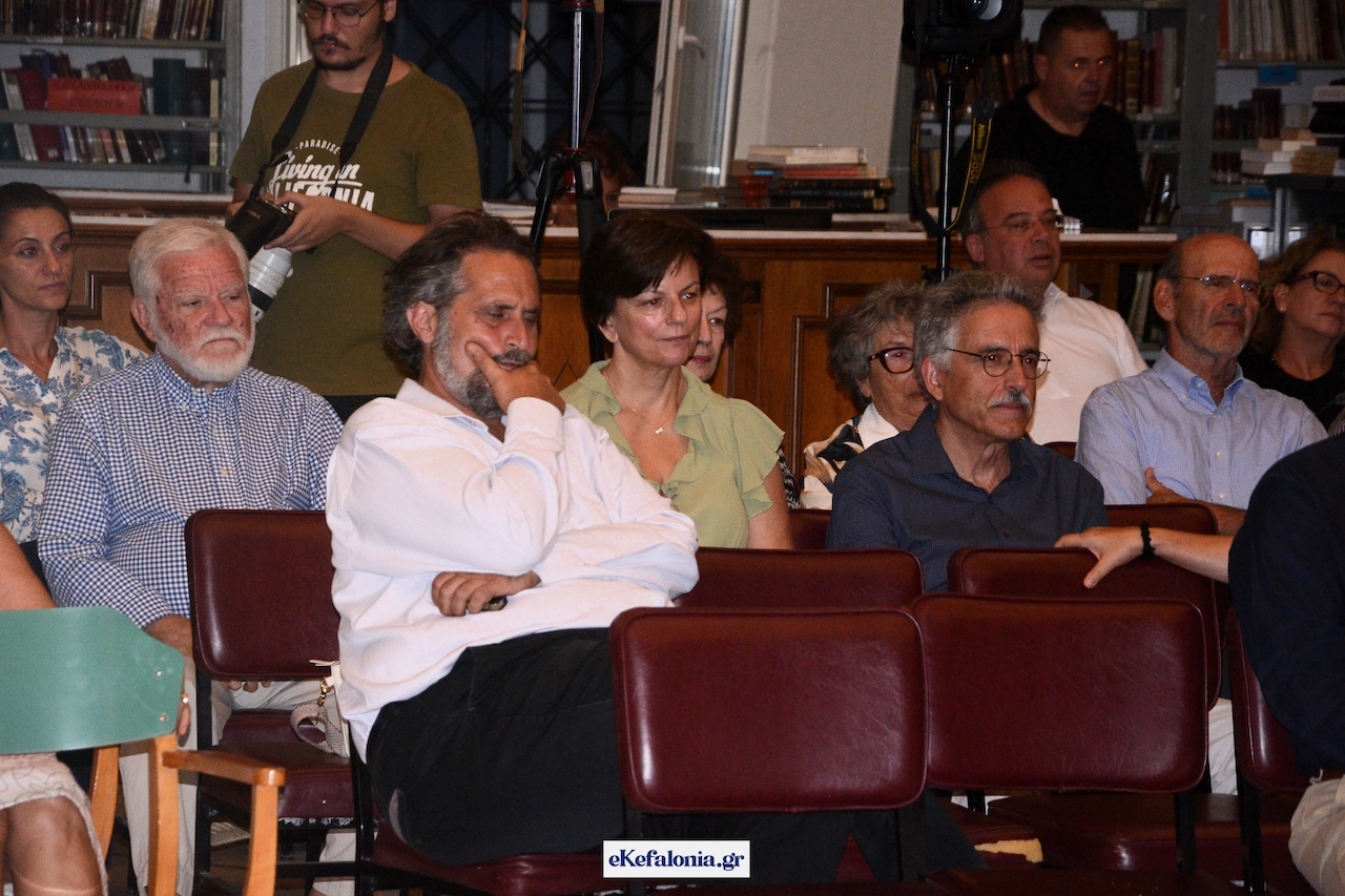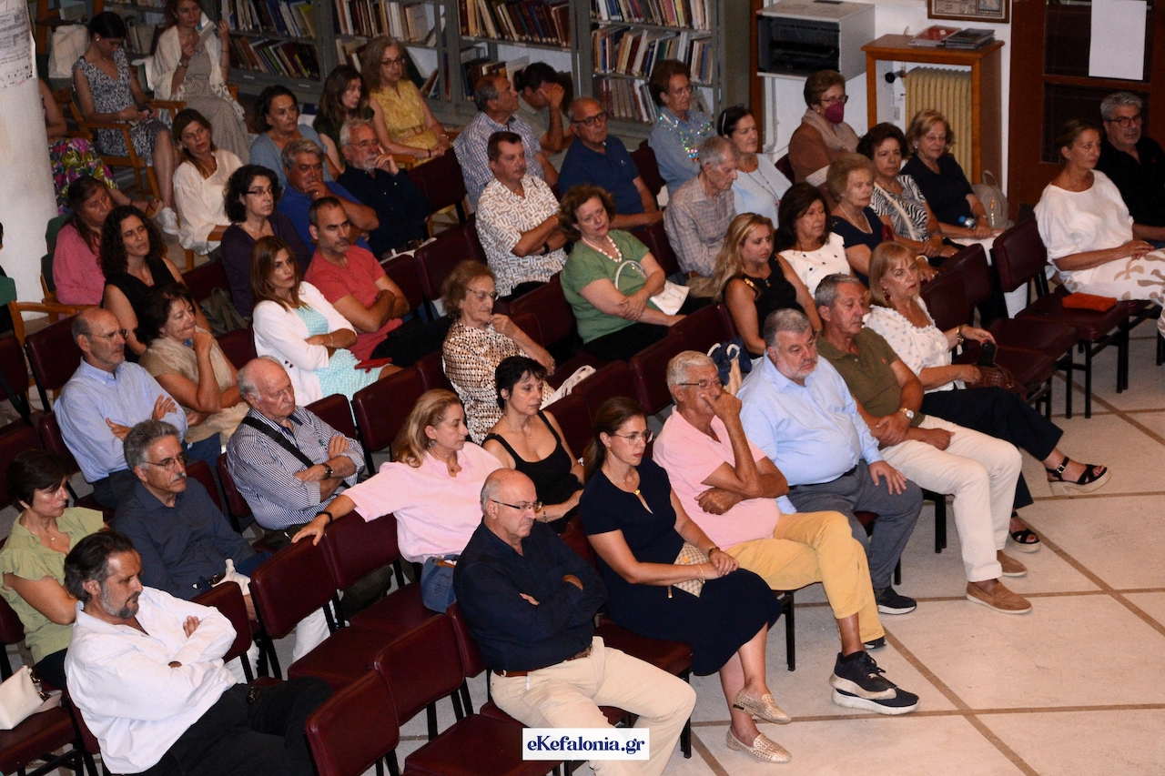 Στην εκδήλωση, που πραγματοποιήθηκε με τη συνδιοργάνωση της Περιφέρειας Ιονίων Νήσων – Π.Ε. Κεφαλληνίας, παρευρέθηκαν εκπρόσωποι των τοπικών αρχών και της πνευματικής ζωής του νησιού. Ανάμεσά τους ο Αντιπεριφερειάρχης Κεφαλονιάς και Ιθάκης Σωτήρης Κουρής, η Θεματική Αντιπεριφερειάρχης Ελένη Παπαναστασάτου, ο Δήμαρχος Αργοστολίου Θεόφιλος Μιχαλάτος, ο Πρόεδρος του Δημοτικού Συμβουλίου Νικόλας Βαλλιανάτος, ο Πρόεδρος του ΙΚΙ Ηλίας Μπεριάτος, ο τ. Δήμαρχος Μάκης Φόρτες, ο υπεύθυνος πολιτισμού του Δήμου Βίκτωρ Ρουχωτάς,  ο εικαστικός Κώστας Ευαγγελάτος, άνθρωποι των γραμμάτων και των τεχνών κ.α.
