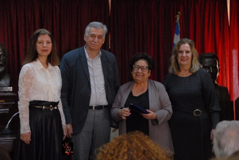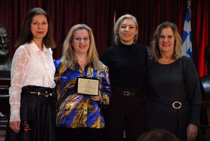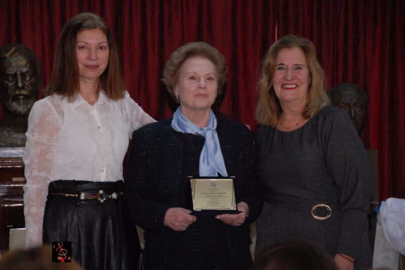 Η κ. Ανθούλα Καλογηροπούλου-Αλεξανδράτου, πρώην Πρόεδρος του συλλόγου και το βραβείο παρέδωσε η νυν Πρόεδρος του ΔΣ κ. Άννα Αλεξανδράτου Δελλαπόρτα