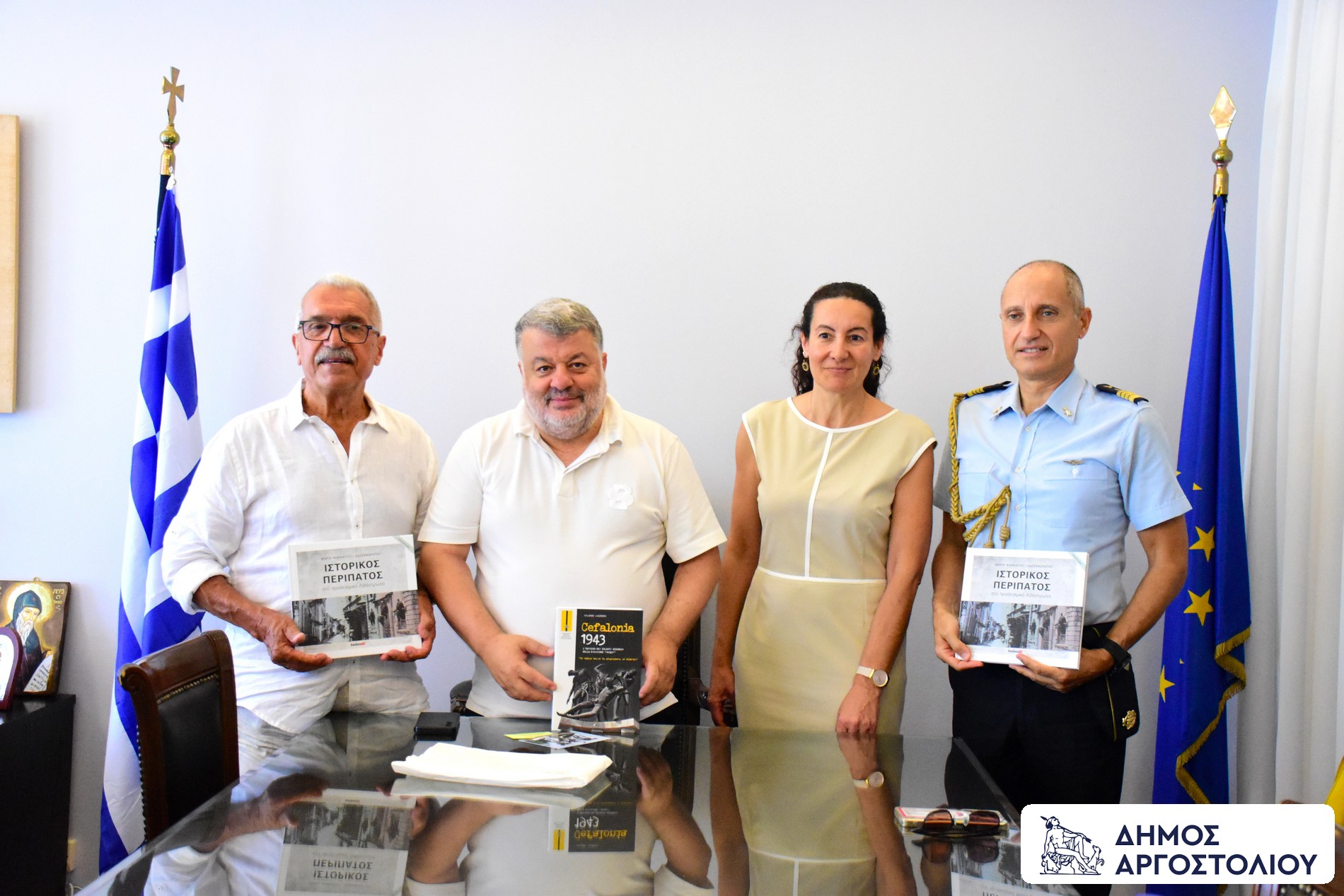 Εθιμοτυπική επίσκεψη στον Δήμαρχο Αργοστολίου κ. Θεόφιλο Μιχαλάτο, πραγματοποίησαν την Τετάρτη 23 Ιουλίου 2025, στο Δημαρχείο, ο Ακόλουθος Άμυνας της Ιταλικής Πρεσβείας Σμήναρχος κ. Maurizio Οrtenzi και ο Πρόεδρος του Ιταλικού Εθνικού Συλλόγου Μεραρχίας Άκουί κ. Claudio Toninel, συνοδευόμενοι από την Επίτιμη Πρόξενο της Ιταλίας στην Κεφαλονιά κα Graziella Micheletti και την Πρόεδρο του ΙταλοΕλληνικού Συνδέσμου Κεφαλληνίας και Ιθάκης κα Clotilde Perrotta.