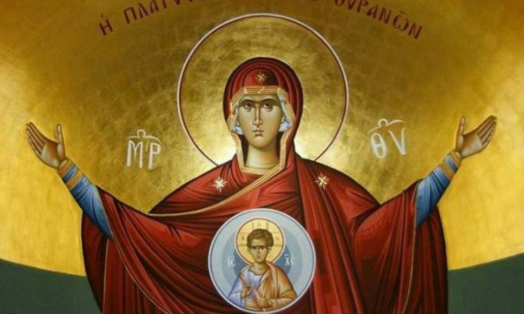 Χαίρε εσύ που έγινες ο θρόνος του Βασιλιά (Χριστού)· χαίρε γιατί βαστάζεις (στην αγκάλη σου) Εκείνον που βαστάζει τα πάντα.