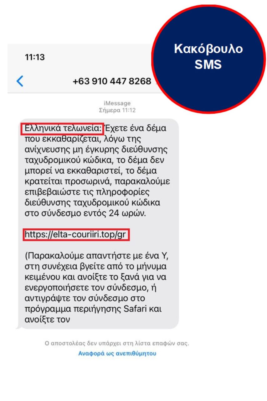 ΠΡΟΣΟΧΗ: Πρόκειται για απόπειρα ηλεκτρονικής απάτης (smishing).