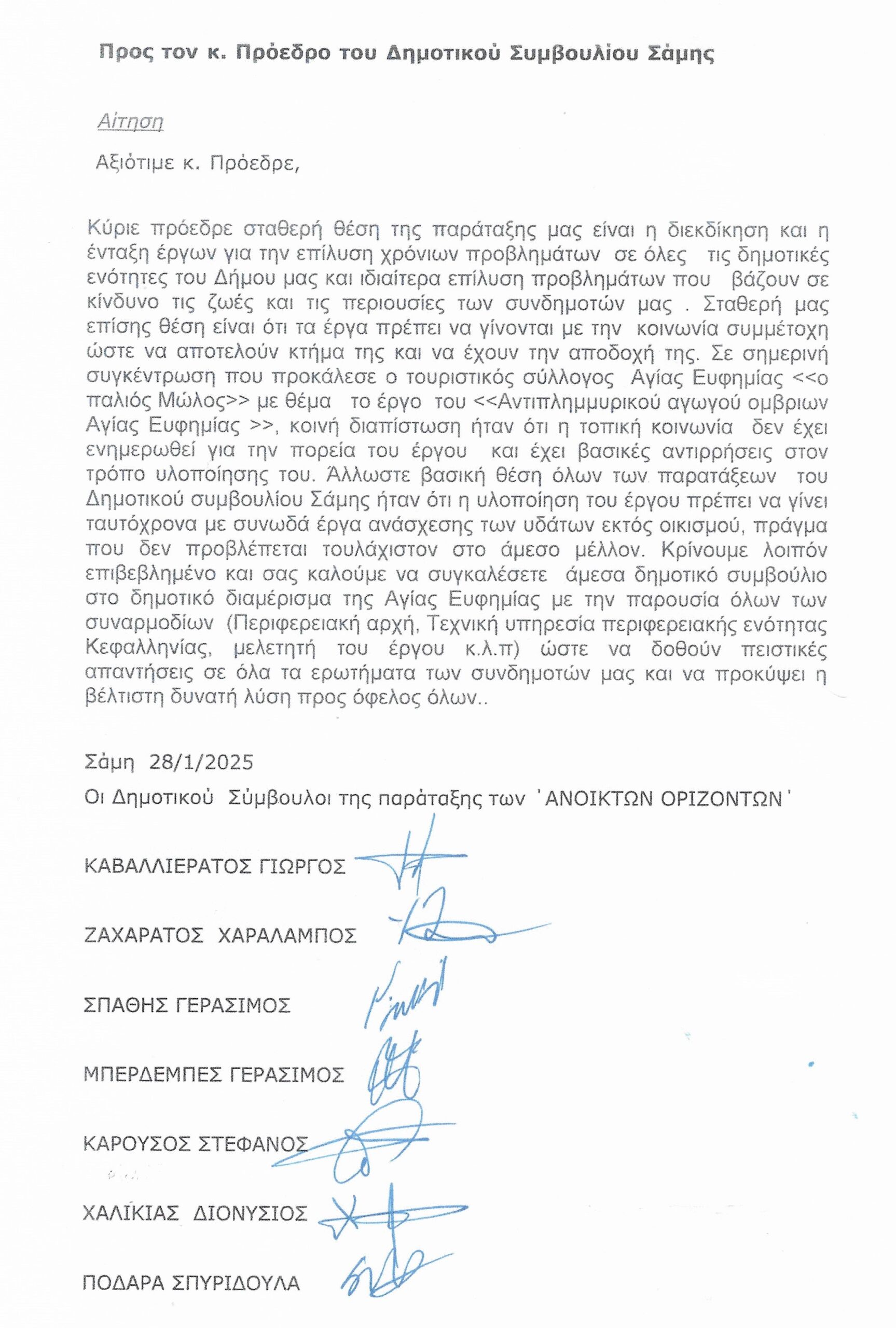 Άμεση σύγκληση του Δημοτικού Συμβουλίου Σάμης για το έργο Αντιπλημμυρικής Προστασίας στην Αγία Ευφημία