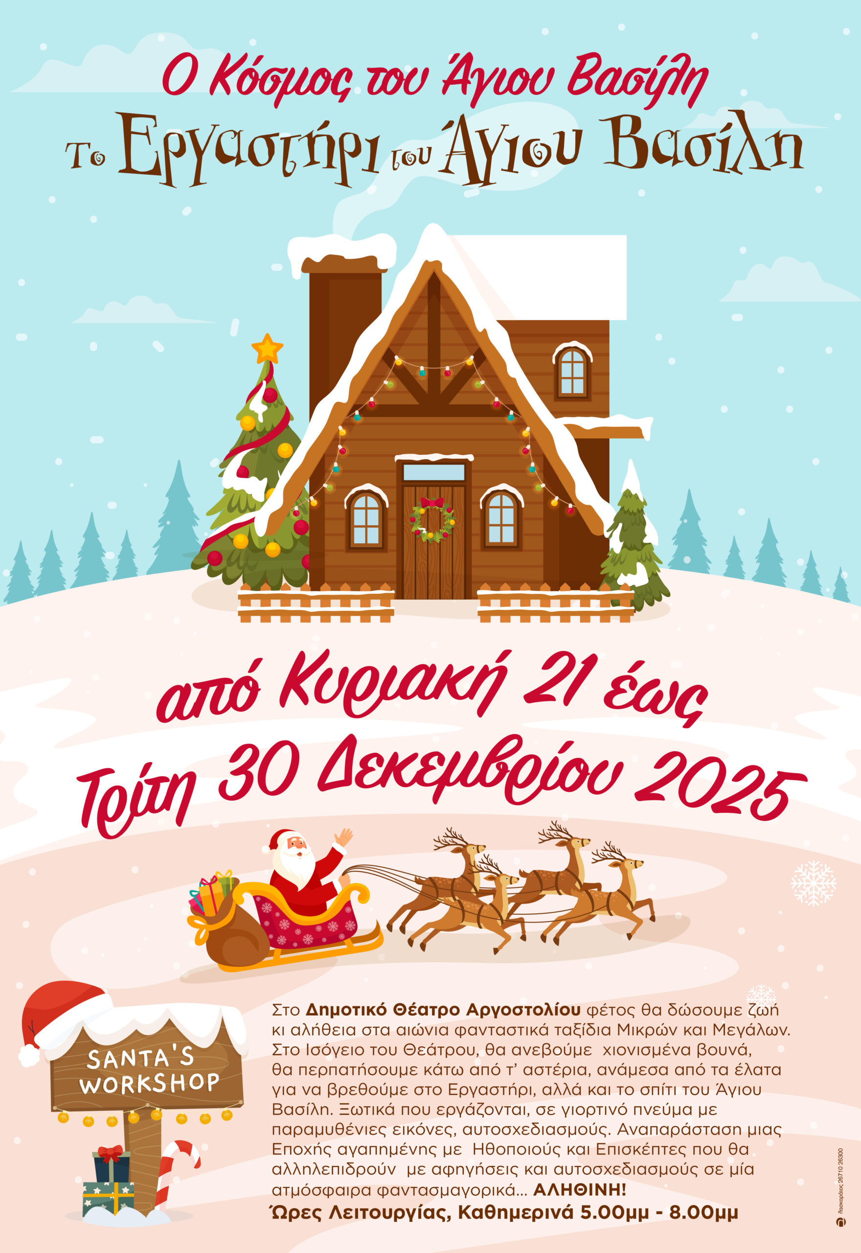 Ανοίγει σήμερα Κυριακή το Εργαστήρι και το Σπίτι του Άγιου Βασίλη
