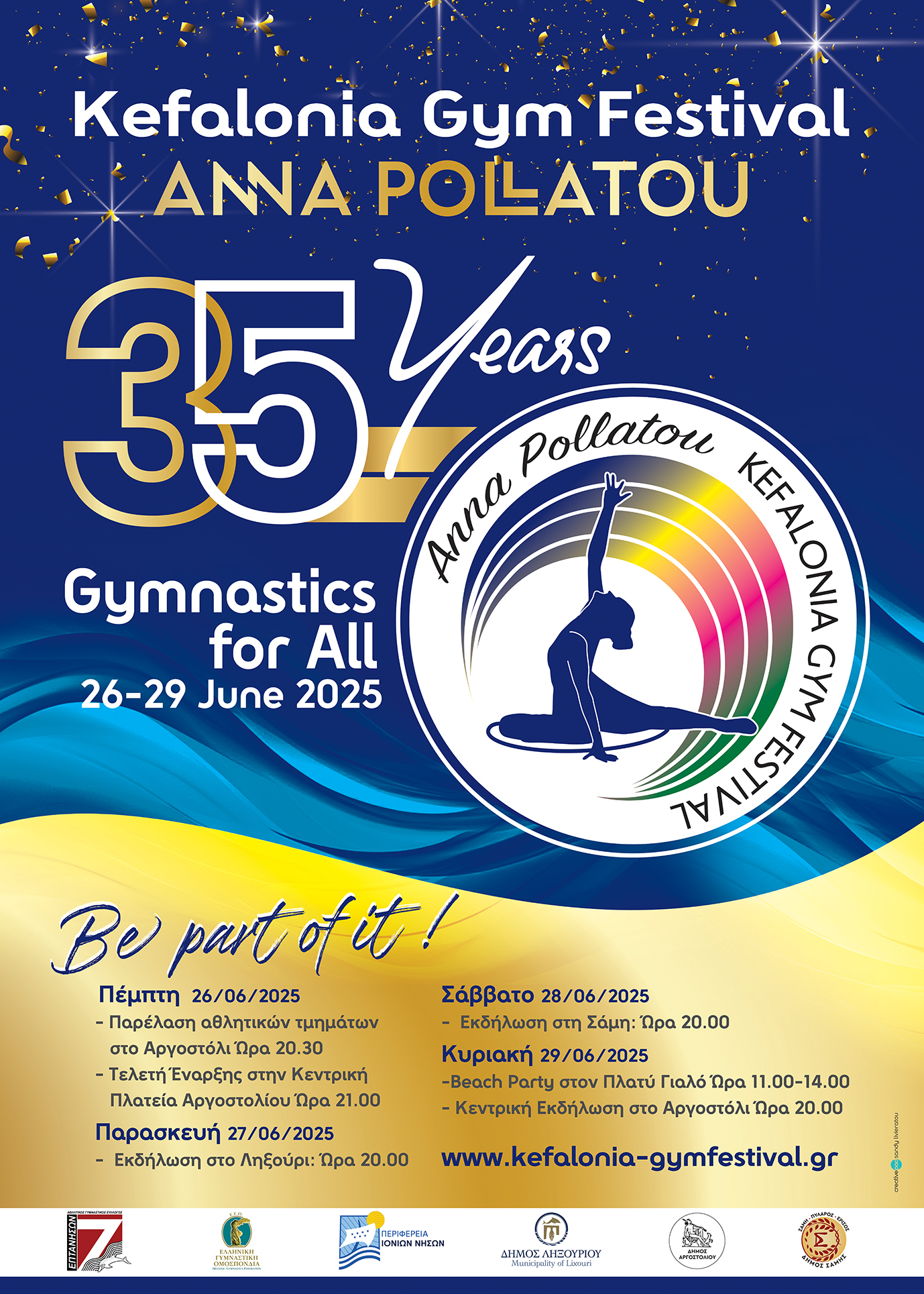 Σε μία εβδομάδα αρχίζει στην πανέμορφη Κεφαλονιά το φημισμένο Διεθνές Φεστιβάλ Γυμναστικής για Όλους “Άννα Πολλάτου” με τη συμμετοχή εκατοντάδων αθλητών και αθλητριών κάθε ηλικίας από την Ελλάδα και το εξωτερικό. Οι συμμετοχές και εφέτος είναι πολλές και θα λάβουν μέρος γκρουπ από την Πορτογαλία, τη Βουλγαρία, τη Λιθουανία, την Πολωνία και τη Σερβία.