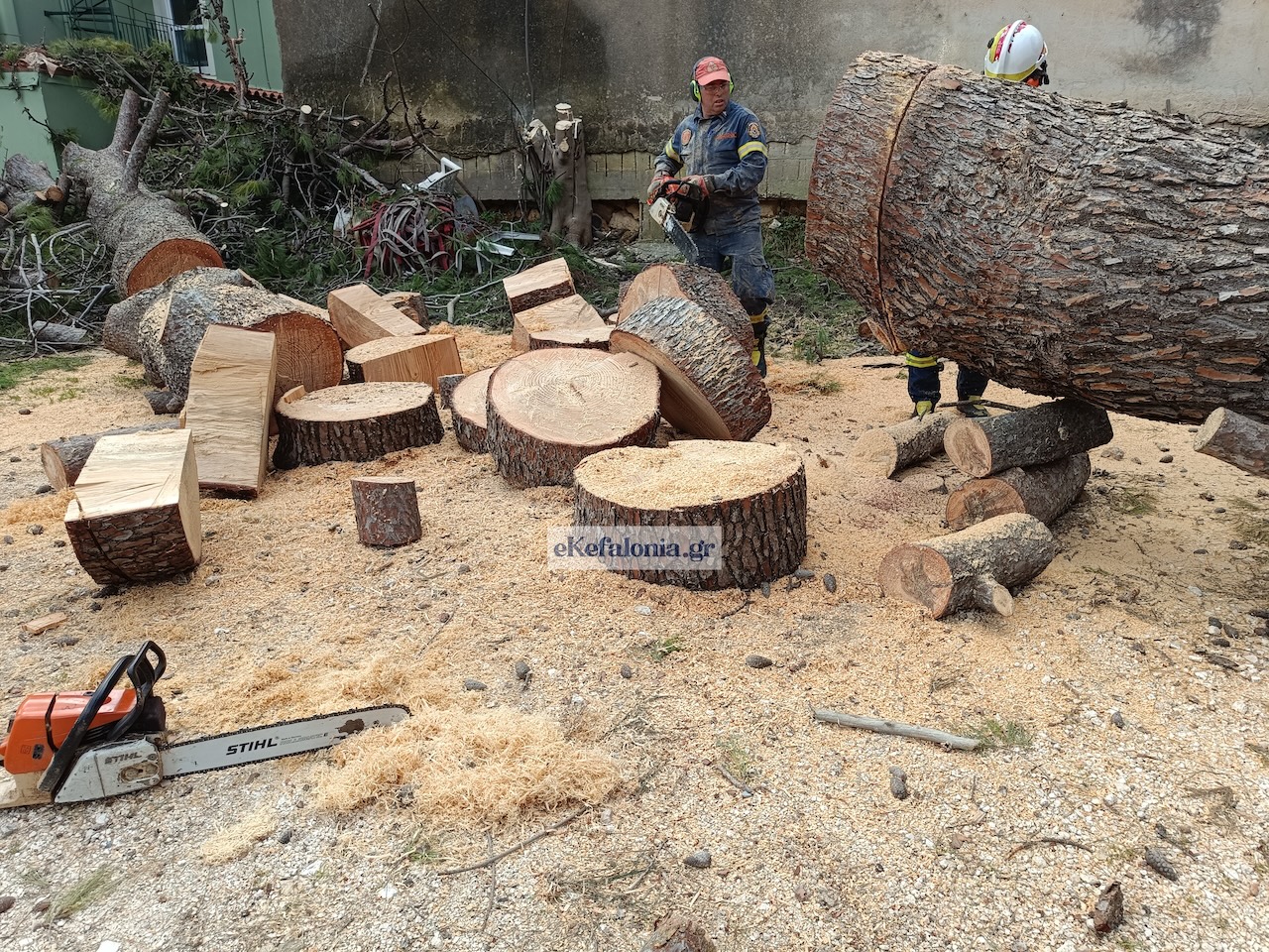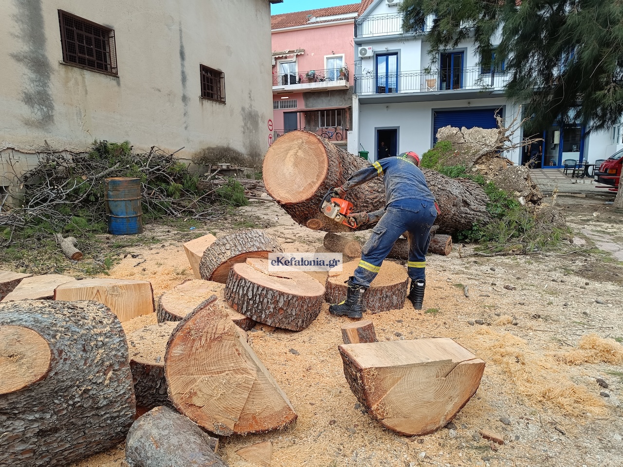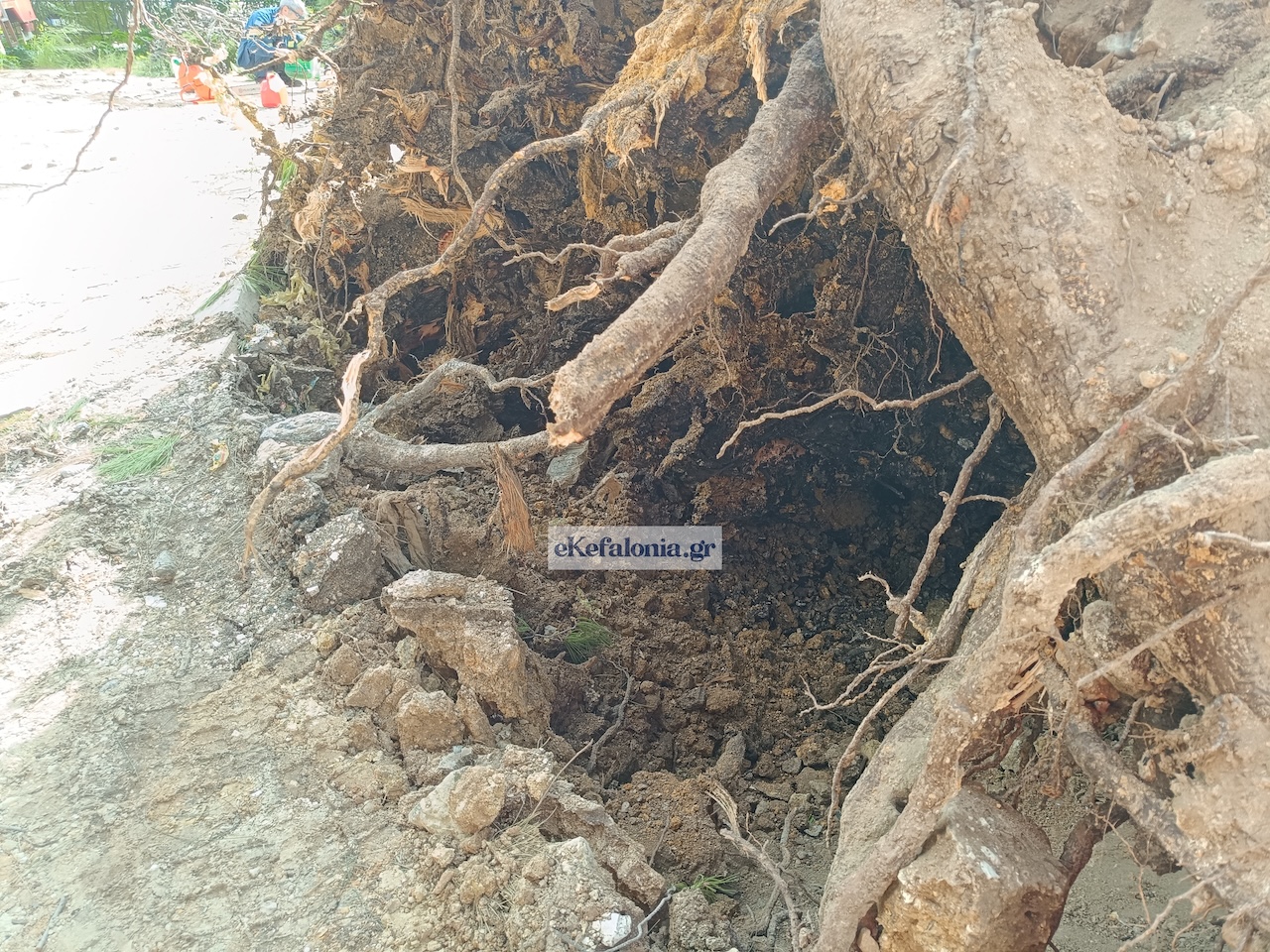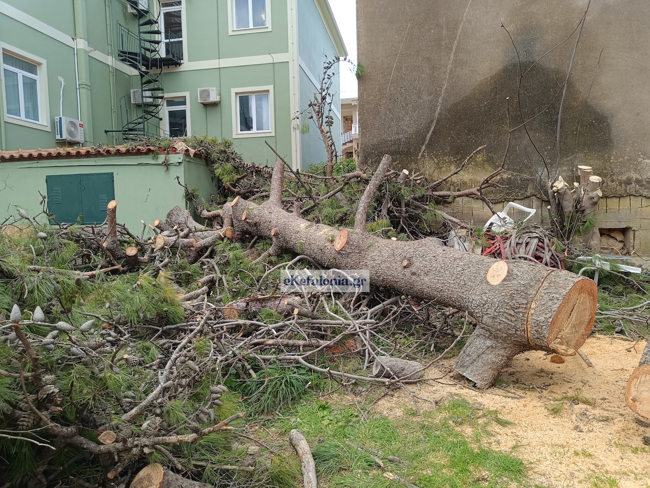 Ένα ιδιαίτερα επικίνδυνο περιστατικό σημειώθηκε στο Αργοστόλι, όταν πεύκο που βρισκόταν κοντά στο κτίριο της Πυροσβεστικής Υπηρεσίας ξεριζώθηκε εξαιτίας των ισχυρών ανέμων που έπνεαν στην περιοχή.