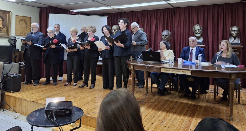 Την εκδήλωση πλαισίωσε η Χορωδία Συλλόγων Λευκαδίων Αττικής «Η Αγία Μαύρα» που συγκίνησε το ακροατήριο.