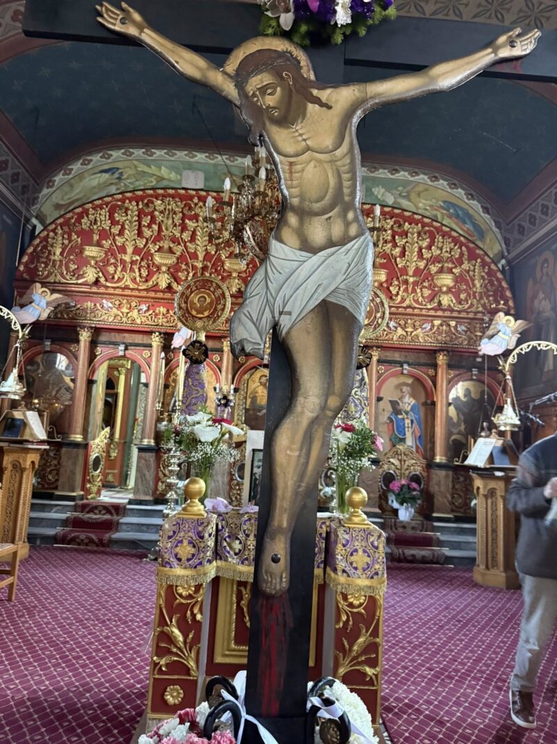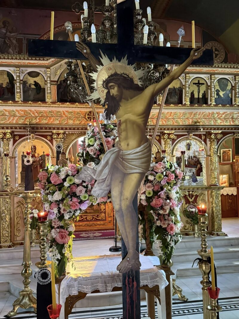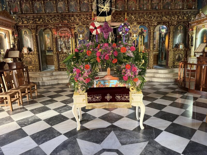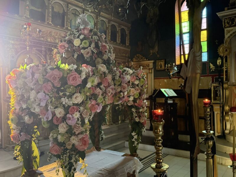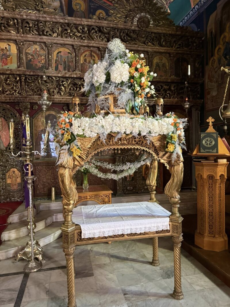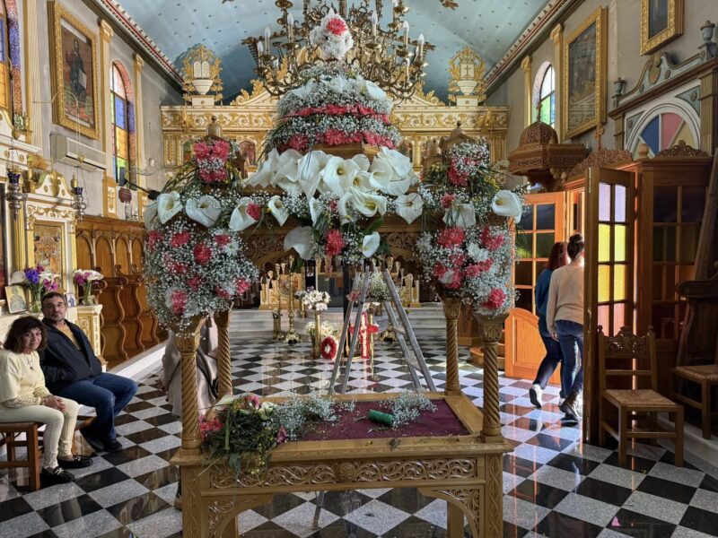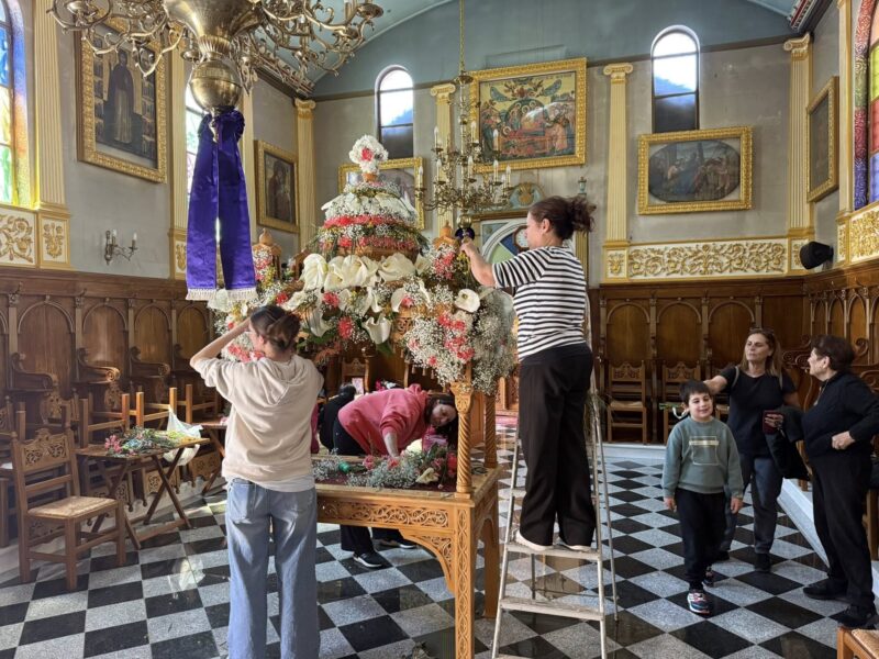 Εδώ η παράδοση κρατά γερά. Ο στολισμός του Επιταφίου γίνεται εξ ολοκλήρου από τους ενορίτες. Οι γυναίκες της γειτονιάς μαζεύουν λουλούδια από τα σπίτια και τα χωράφια, ενώ οι νέοι βοηθούν με σεβασμό και ζήλο. Η ατμόσφαιρα είναι οικογενειακή, αυθεντική, κατανυκτική.
