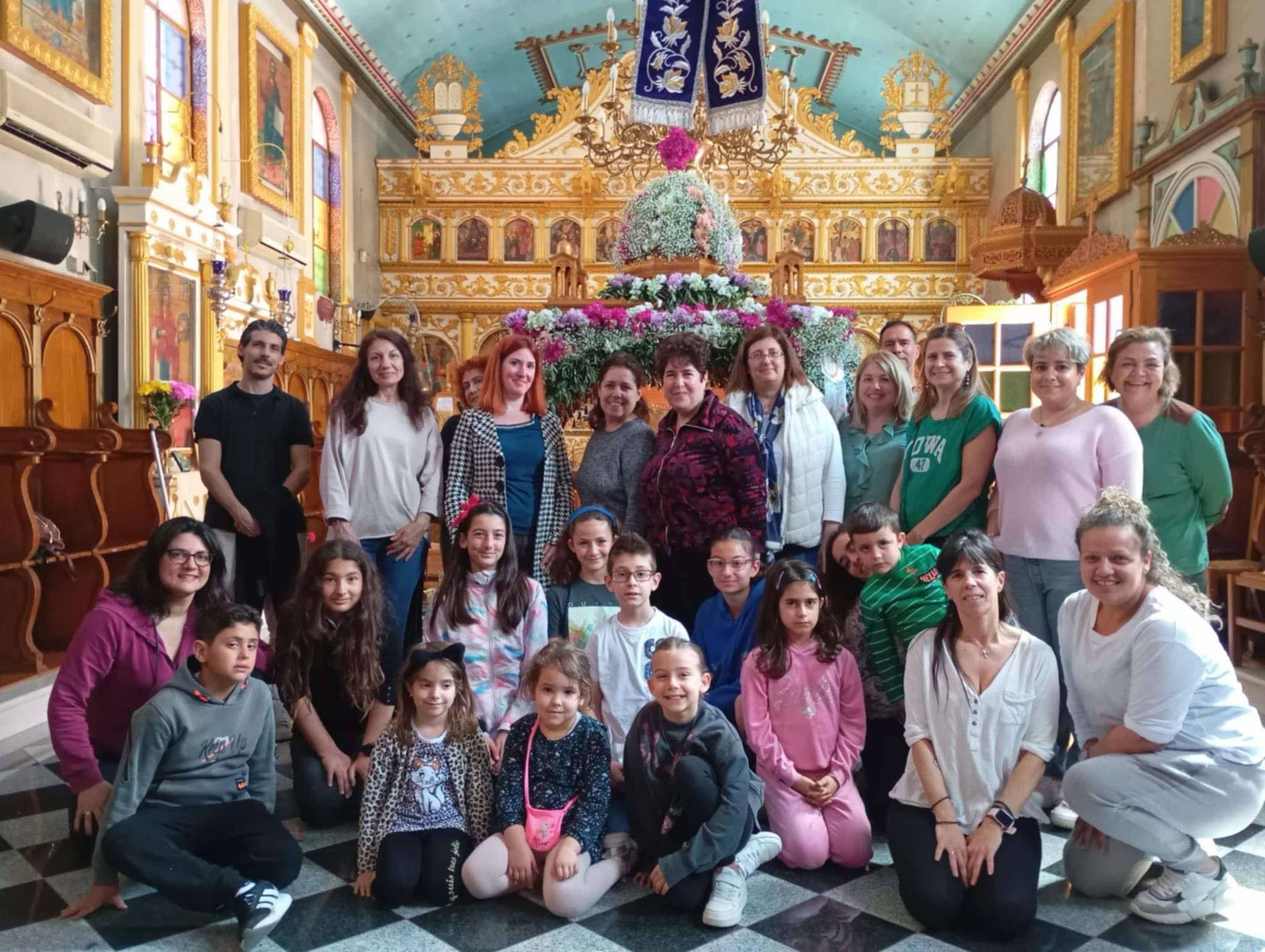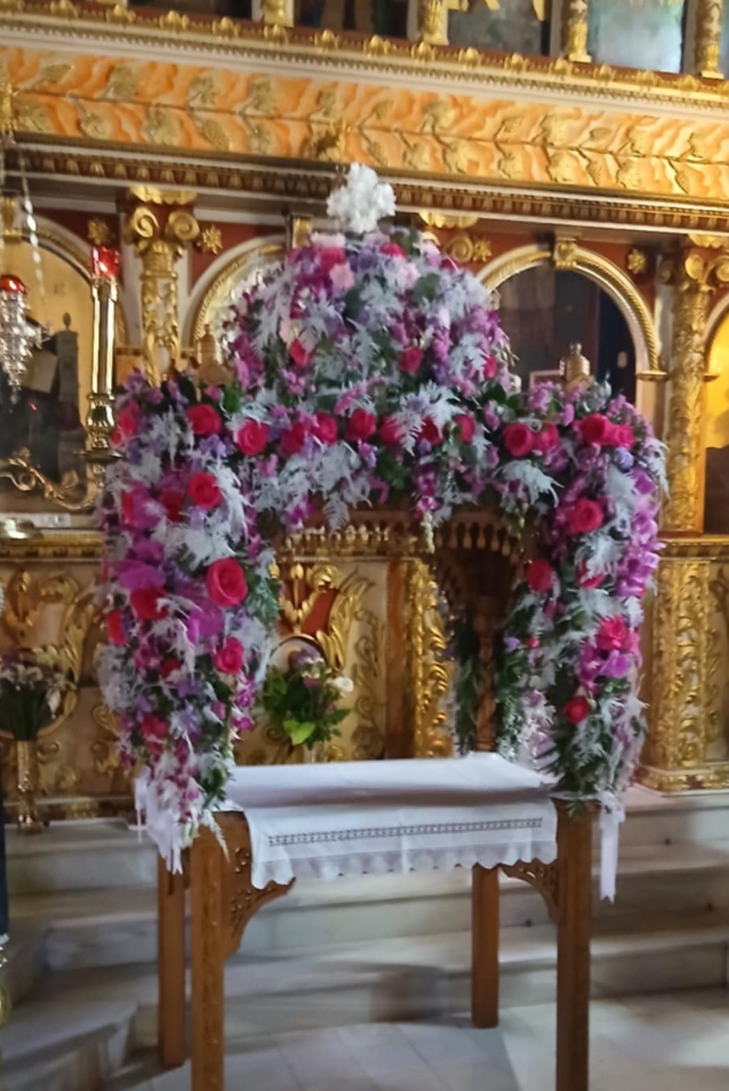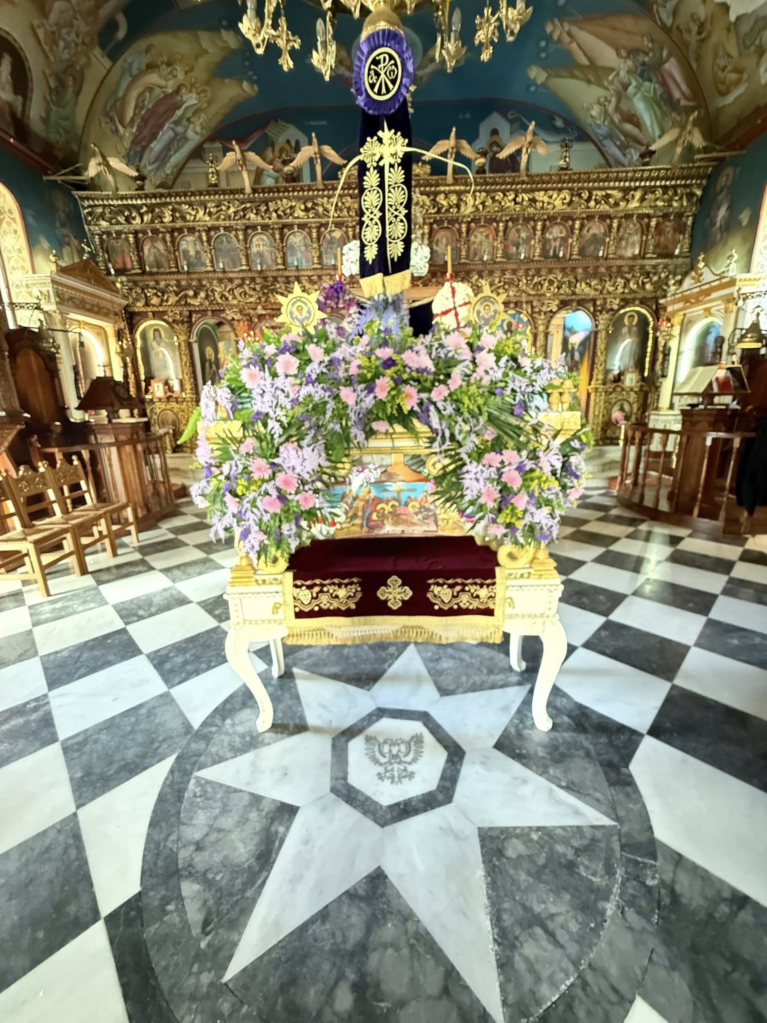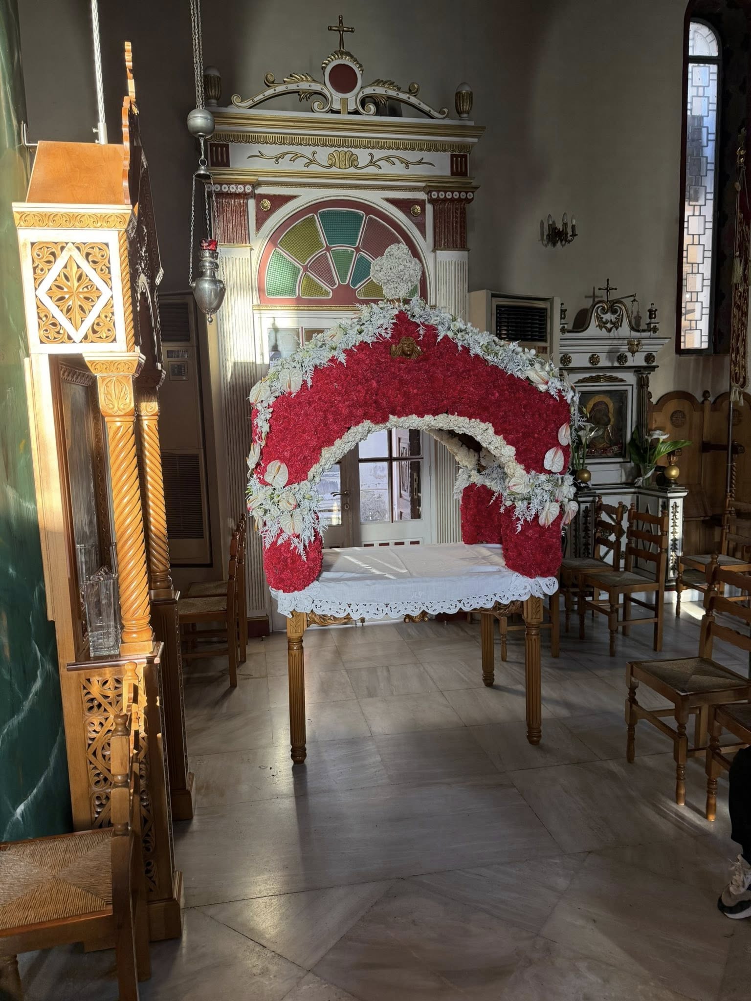 Εδώ η παράδοση κρατά γερά. Ο στολισμός του Επιταφίου γίνεται εξ ολοκλήρου από τους ενορίτες. Οι γυναίκες της γειτονιάς μαζεύουν λουλούδια από τα σπίτια και τα χωράφια, ενώ οι νέοι βοηθούν με σεβασμό και ζήλο. Η ατμόσφαιρα είναι οικογενειακή, αυθεντική, κατανυκτική.