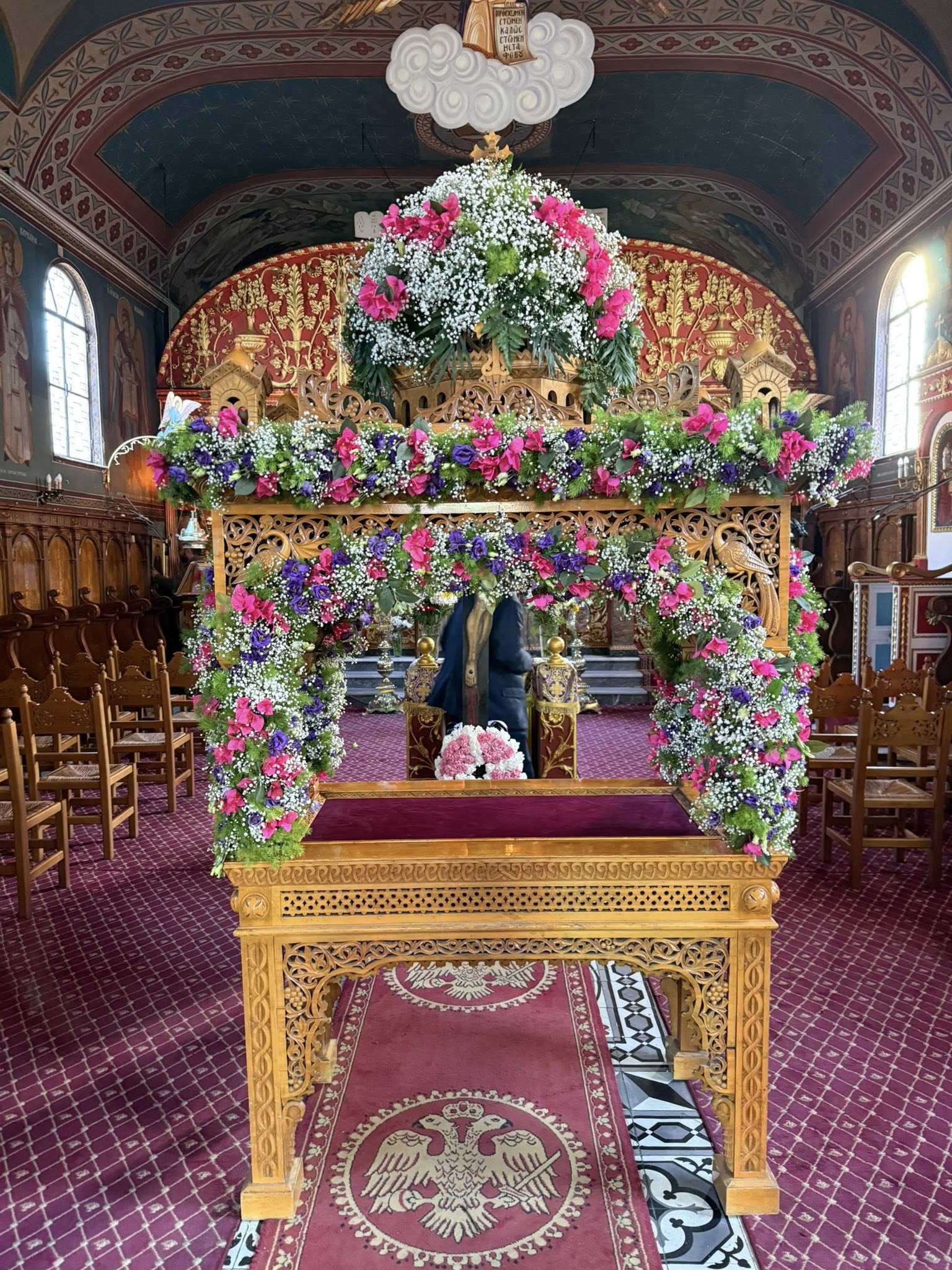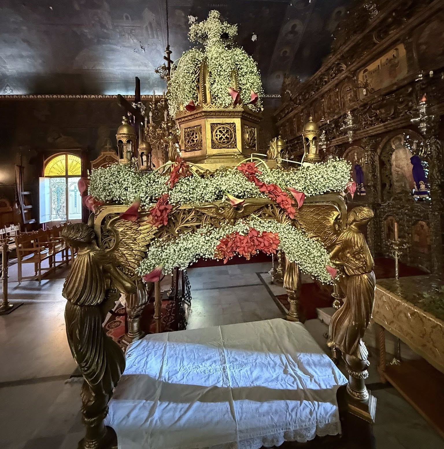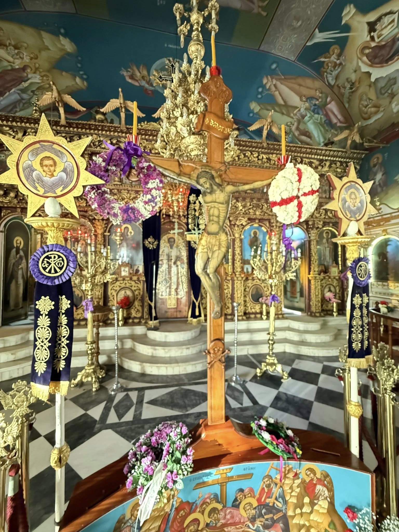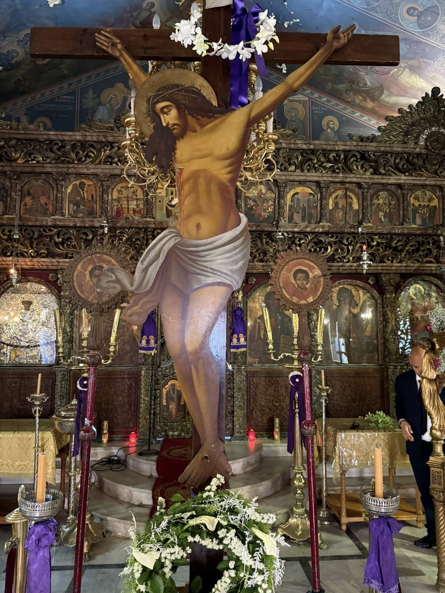 Εδώ η παράδοση κρατά γερά. Ο στολισμός του Επιταφίου γίνεται εξ ολοκλήρου από τους ενορίτες. Οι γυναίκες της γειτονιάς μαζεύουν λουλούδια από τα σπίτια και τα χωράφια, ενώ οι νέοι βοηθούν με σεβασμό και ζήλο. Η ατμόσφαιρα είναι οικογενειακή, αυθεντική, κατανυκτική.
