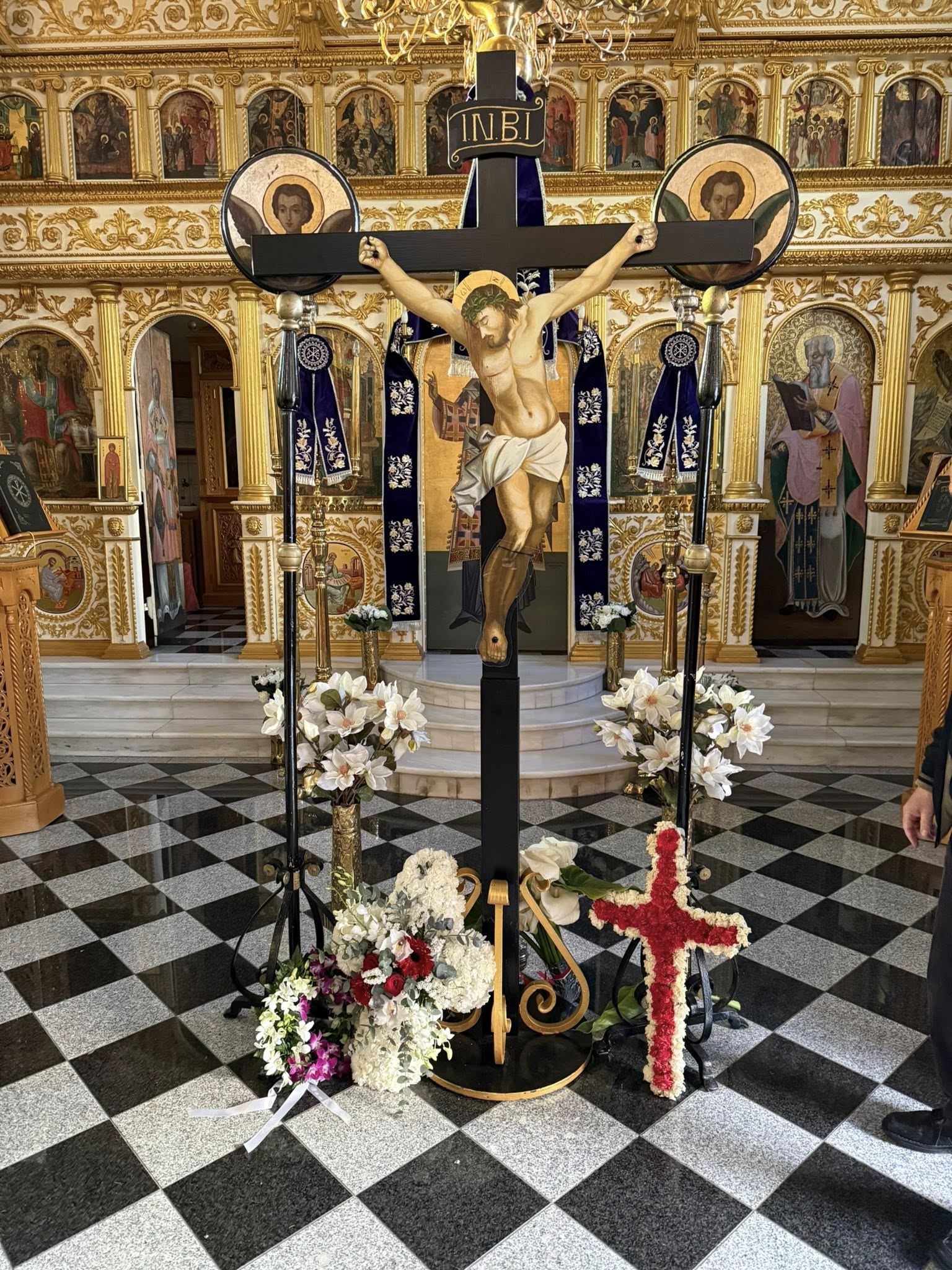 Ο Επιτάφιος στον Ιερό Ναό του Αρχαγγέλου στην καρδιά του Αργοστολίου αποπνέει μεγαλοπρέπεια. Βαθυκόκκινα και χρυσοκίτρινα άνθη, δεμένα με συμμετρική ακρίβεια και θεολογική έμπνευση. Οι εικόνες ενισχύουν την πνευματικότητα του χώρου.