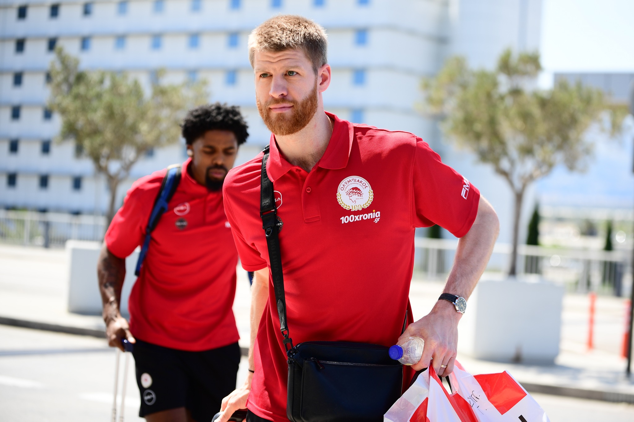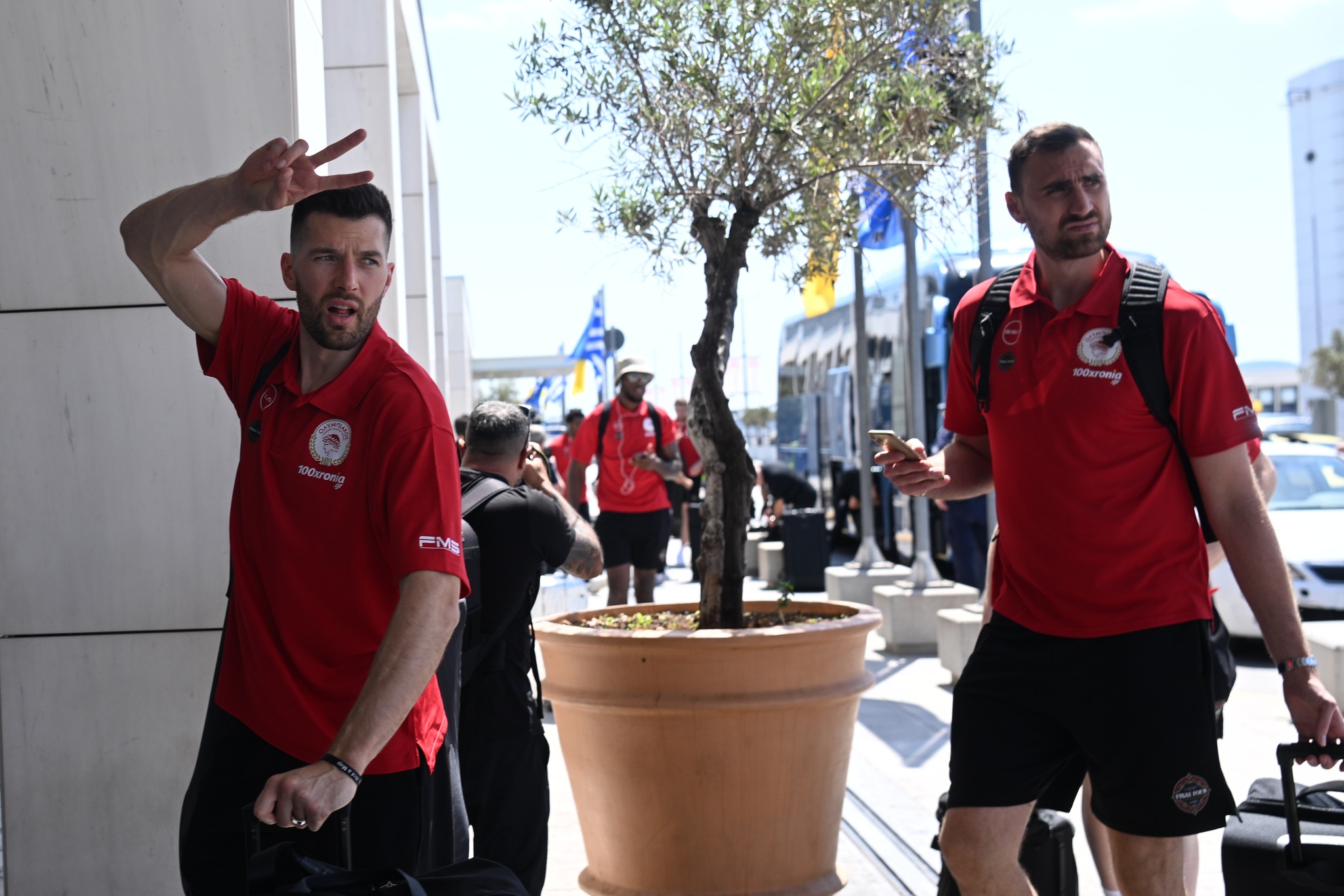 Από το αεροδρόμιο «Ελευθέριος Βενιζέλος», ο Γιώργος Μπαρτζώκας και ο αρχηγός Κώστας Παπανικολάου τόνισαν ότι όλη η ομάδα είναι απόλυτα συγκεντρωμένη στον ημιτελικό, χωρίς να παρασύρεται από τα σενάρια ενός ιστορικού ελληνικού τελικού με τον Παναθηναϊκό.