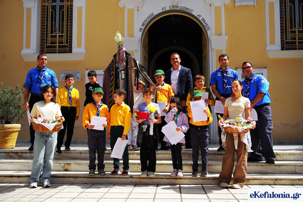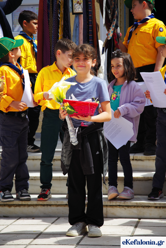 Στο επίκεντρο της εκδήλωσης βρέθηκαν τα παιδιά του 1ου Συστήματος Προσκόπων, τα οποία έψαλαν τα παραδοσιακά κεφαλονίτικα κάλαντα του Λαζάρου, μεταφέροντας το αυθεντικό μήνυμα της παράδοσης και συγκινώντας το κοινό που παρακολούθησε την εκδήλωση.
