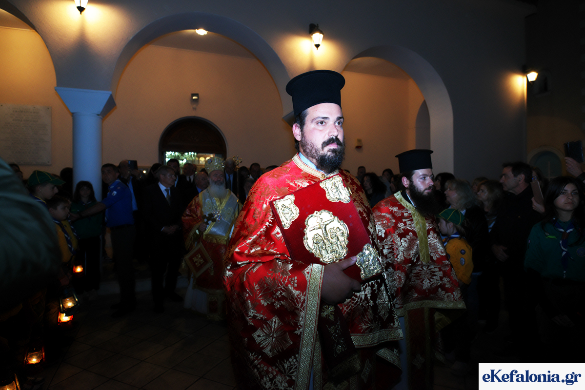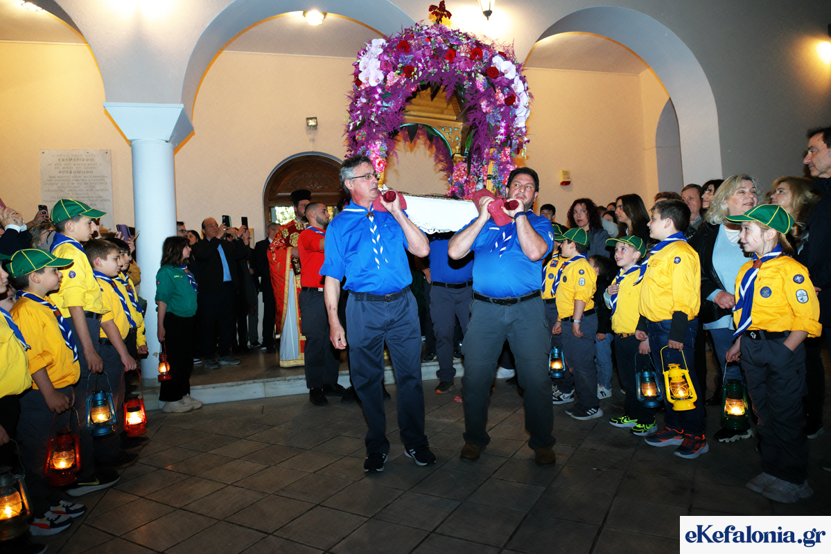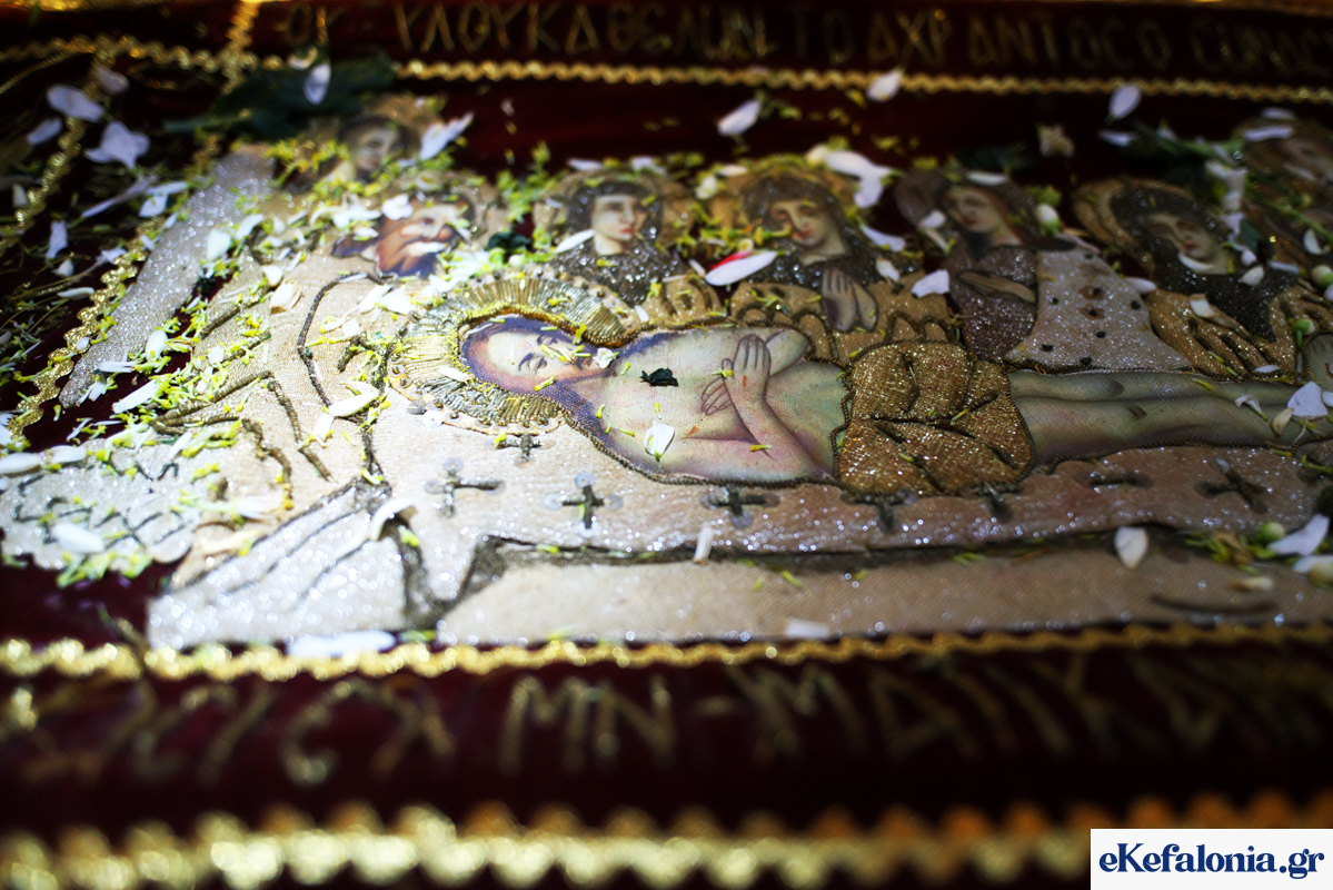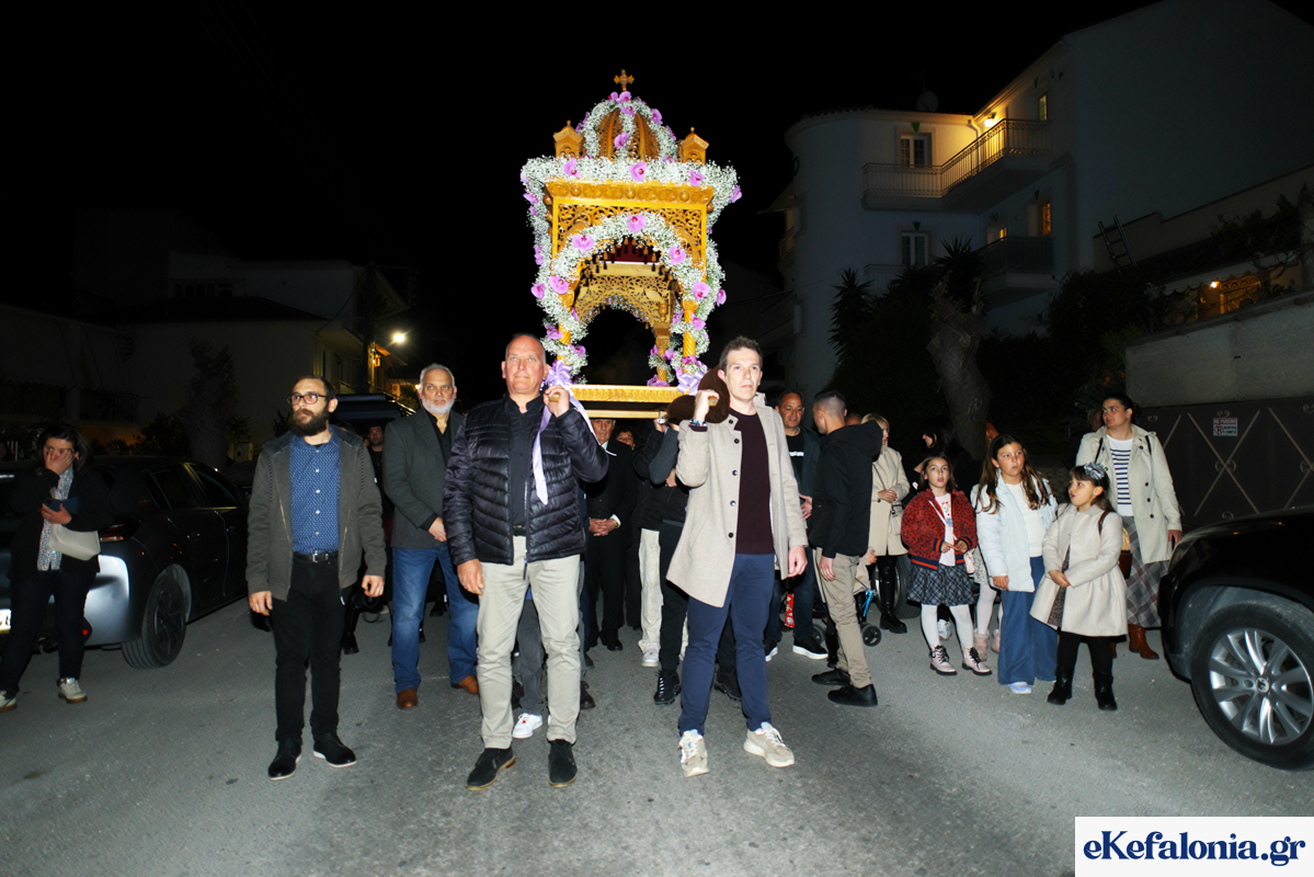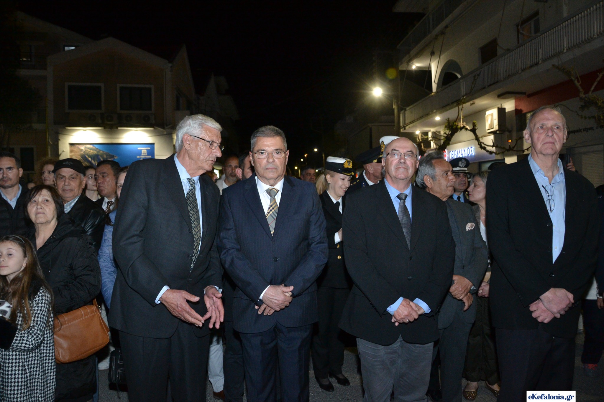 Ακολούθησε η καθιερωμένη περιφορά του Επιταφίου στους κεντρικούς δρόμους της πόλεως και η συνάντηση με τους Επιταφίους της ενορίας του Αγίου Νικολάου, της Σισσίωτισσας, του Αγ. Σπυρίδωνος καθώς και των Ταξίαρχων καταλήγοντας στην κεντρική πλατεία της πόλης του Αργοστολίου.