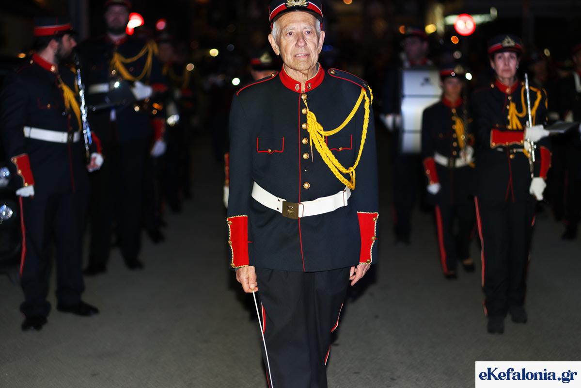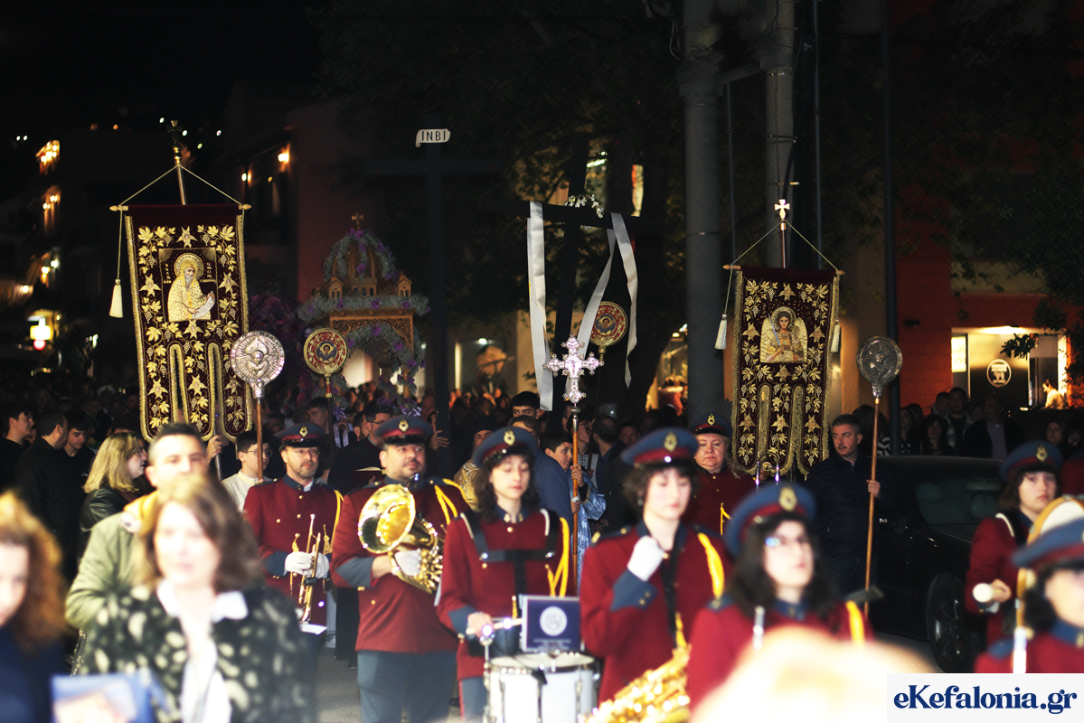 Την πομπή συνόδευσαν η Φιλαρμονική του Δήμου Αργοστολίου «Διονύσιος Λαυράγκας», υπό την διεύθυνση του μαέστρου Βασίλη Κόκκαλη, η Φιλαρμονική Σχολή Κεφαλληνίας, υπό την διεύθυνση του μαέστρου Αλέξανδρου Σωφρόνη οι πρόσκοποι από το 1ο Σύστημα Προσκόπων Αργοστολίου καθώς και μέλη του Λυκείου Ελληνίδων με παραδοσιακές φορεσιές. Οι περιφορές των επιταφίων της Μεγάλης Παρασκευής στο ιστορικό κέντρο του Αργοστολίου έχουν διαφορετικό χρώμα και ακολουθούν κάποιου είδους ιεροτελεστία που κάνουν το γεγονός πιο εντυπωσιακό.