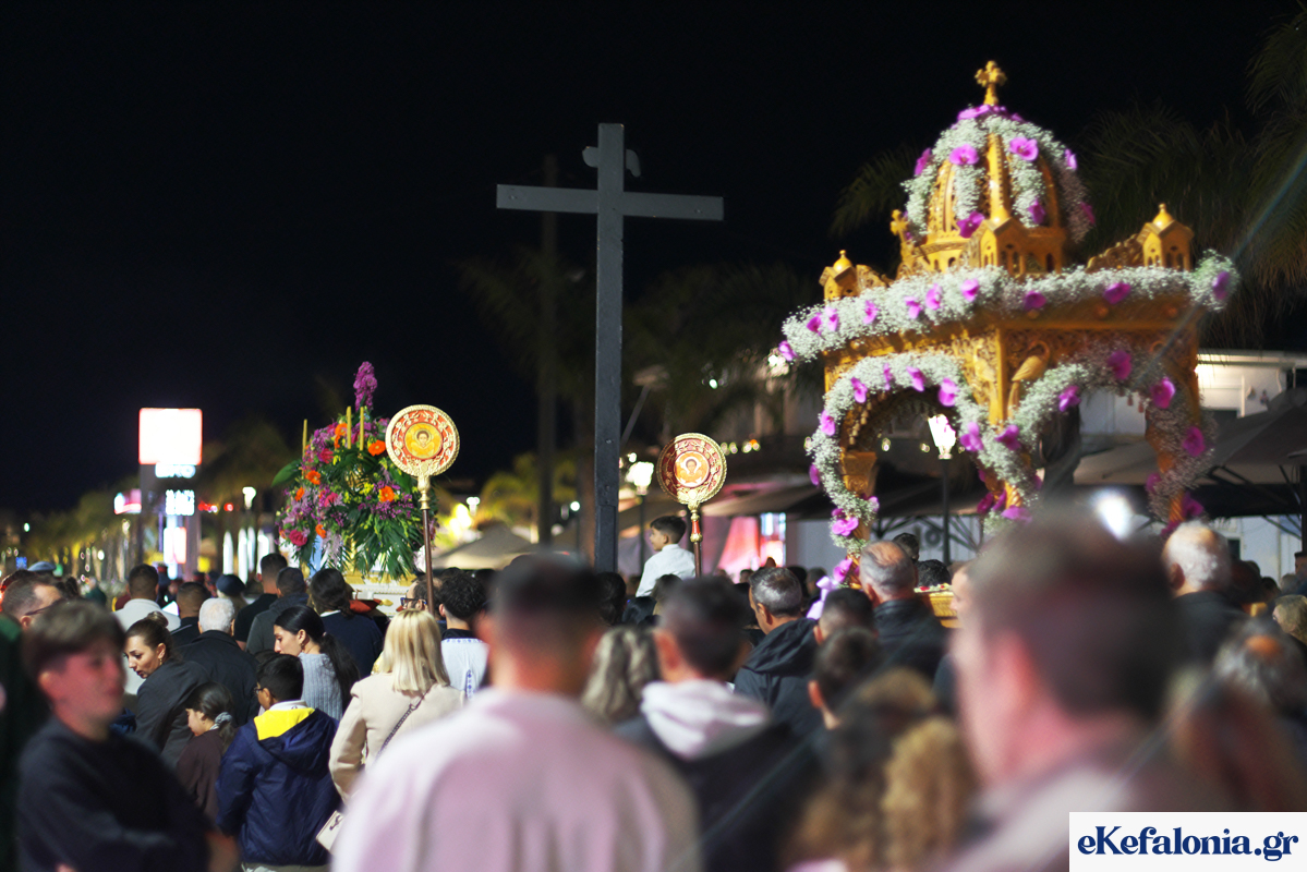 Πλήθος πιστών, επισκέπτες της Κεφαλονιάς και κάτοικοι του νησιού, συμμετείχαν και παρακολούθησαν την περιφορά των επιτάφιων που ξεκίνησε από νωρίς το βράδυ. Ως είθισται, ο Μητροπολιτικός επιτάφιος του Ιερού Ναού Ευαγγελιστρίας ήταν ο πρώτος που ξεκίνησε τη μεγάλη πομπή προς την κεντρική πλατεία Βαλλιάνου. Ακολούθησαν και οι επιτάφιοι των υπόλοιπων ενοριών του Αργοστολίου.