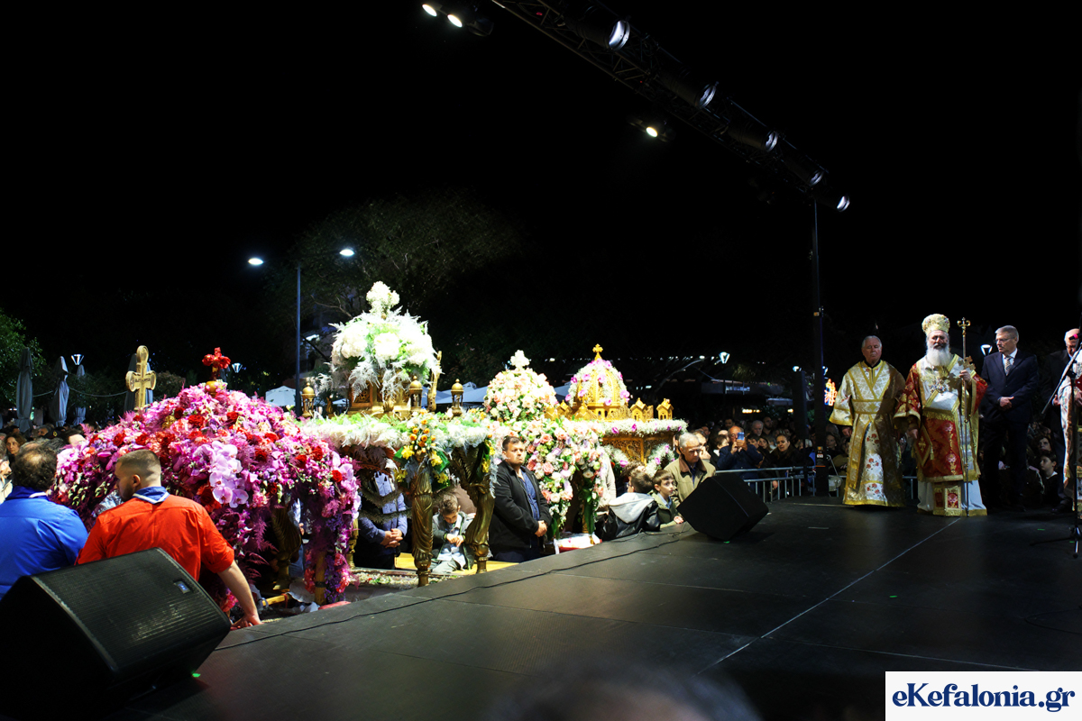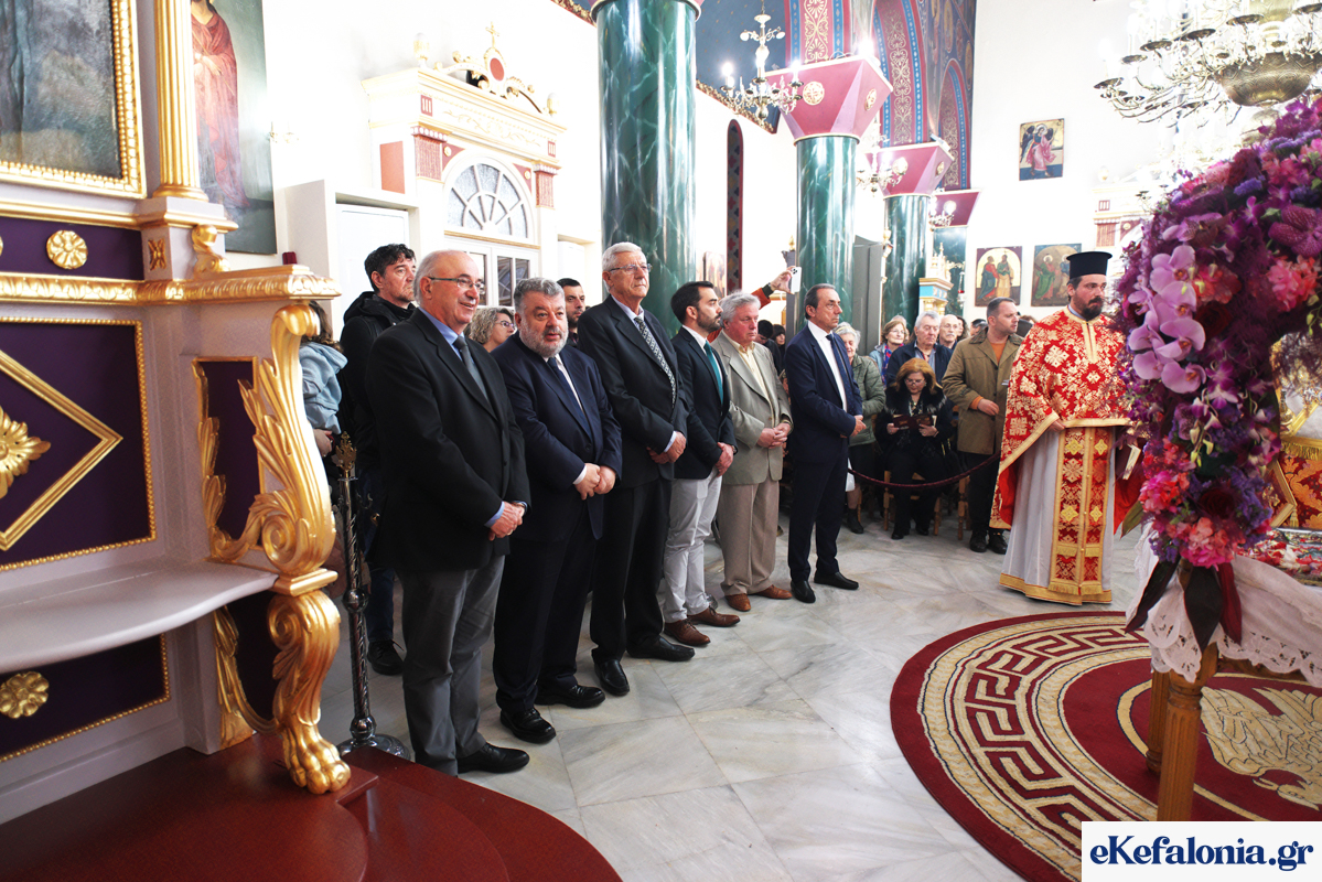 Στις λατρευτικές εκδηλώσεις διακρίναμε, μεταξύ άλλων, τον Βουλευτή του νομού Παναγή Καππάτο, τον Αντιπεριφερειάρχη Κεφαλονιάς Σωτήρη Κουρή, τον Δήμαρχο Αργοστολίου Θεόφιλο Μιχαλάτο, τον Πρόεδρο του Δημ. Συμβουλίου Νικόλα Βαλλιανάτο, την Θεματική Αντιπεριφερειάρχη Ελένη Παπαναστασάτου, τον Επικεφαλής της Μείζονος Αντιπολίτευσης Γιάννη Λυκούδη, τον Διοικητής της ΑΕΝ Ιόνιων Νήσων Θανάση Σιούτη, τον Πρόεδρο της ΔΕΕΠ Κεφαλονιάς & Ιθάκης Άγγελο Βαγγελάτο, τον Δημ. Σύμβουλο Άγγελο Κωνσταντάκη, Εκπροσώπους των Σωμάτων Ασφαλείας κ.α.