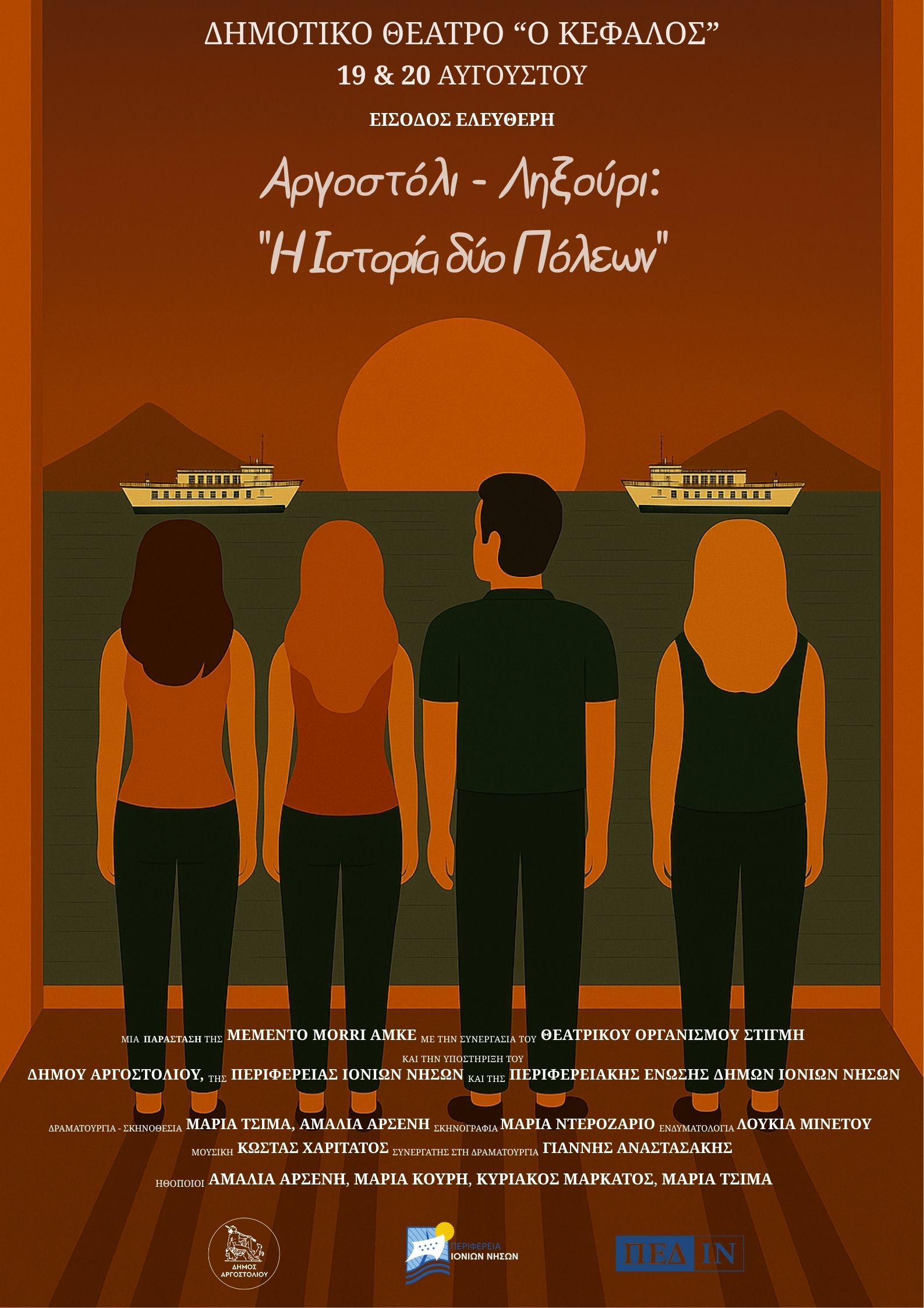 Μια παράσταση της MEMENTO MORRI AMKE με την υποστήριξη του ΔΗΜΟΥ ΑΡΓΟΣΤΟΛΙΟΥ της ΠΕΡΙΦΕΡΕΙΑΣ ΙΟΝΙΩΝ ΝΗΣΩΝ και της ΠΕΡΙΦΕΡΕΙΑΚΗΣ ΕΝΩΣΗΣ ΔΗΜΩΝ ΙΟΝΙΩΝ ΝΗΣΩΝ