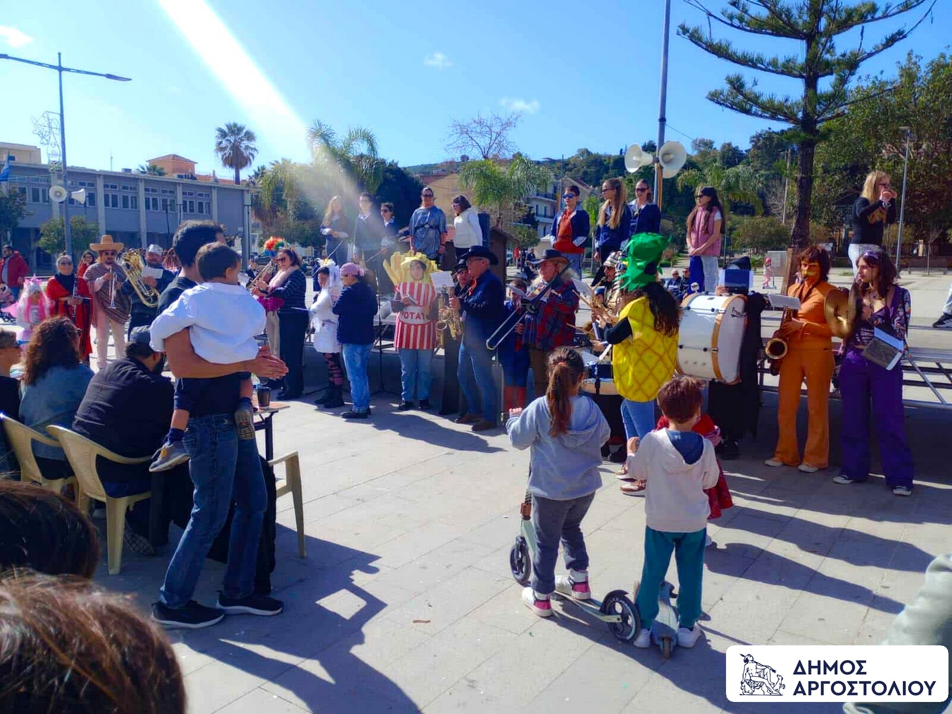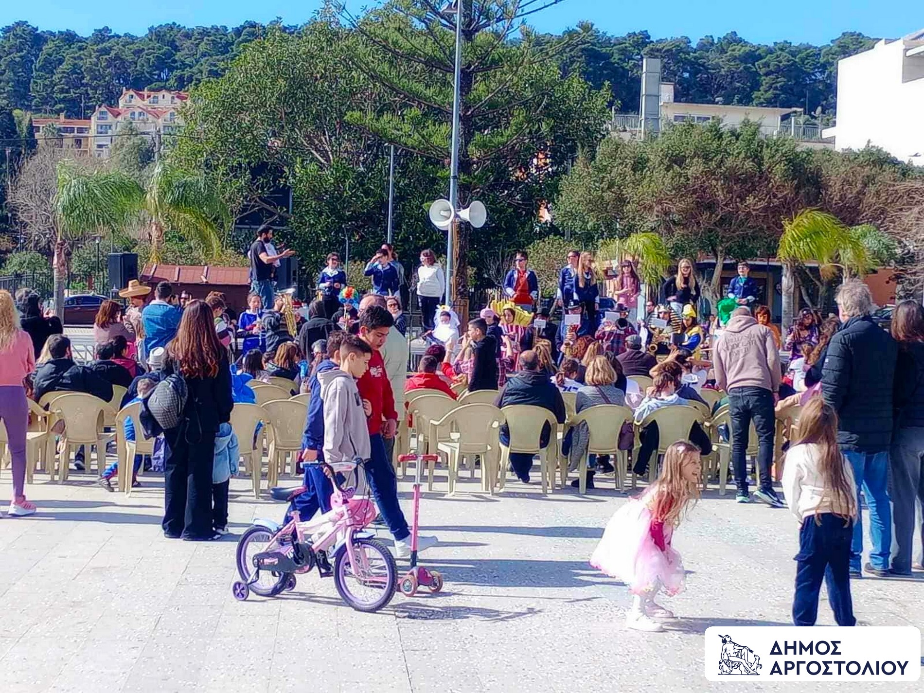 Παρά τις αρχικές αμφιβολίες, ο καιρός στάθηκε σύμμαχος και τις δύο ημέρες. Έτσι οι Συντονιστές, Μέλη του Θεατρικού Εργαστηρίου του Δήμου Αργοστολίου, με πολύ χιούμορ και αποκριάτικη διάθεση, εμψύχωσαν τις ομάδες Παιδιών και Εφήβων για δύσκολες προκλήσεις, αλλά και σε διάδραση με το κοινό παρουσιάστηκε στην πλατεία, ένα θέαμα ξεχωριστό με κέφι και μουσική.