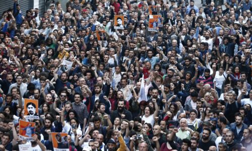 Δεκάδες διαδηλωτές, που συγκεντρώθηκαν για να αποτίσουν φόρο τιμής κατά...