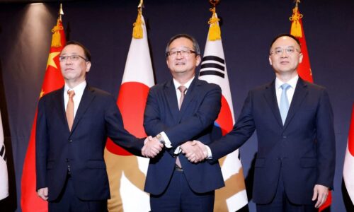 Οι επικεφαλής της διπλωματίας της Ιαπωνίας, της Κίνας και της...