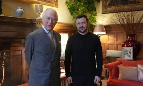 Ο Ουκρανός πρόεδρος Βολοντίμιρ Ζελένσκι έγινε δεκτός από τον βασιλιά...