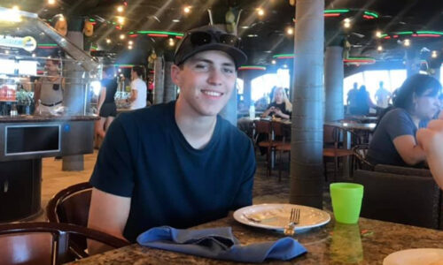 Με ανέκφραστη όψη και φορώντας αλεξίσφαιρο γιλέκο, ο Τάιλερ Ρόμπινσον...
