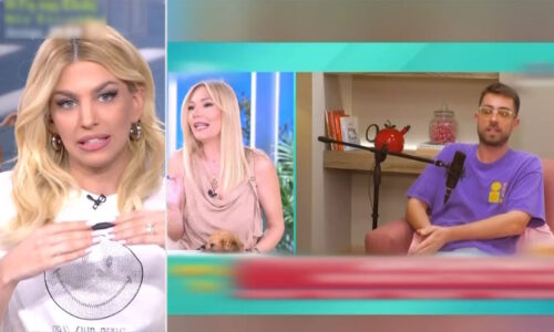 Η επίμαχη στιγμή στον αέρα της εκπομπής. Τον Μιχάλη Δημητρακόπουλο...