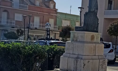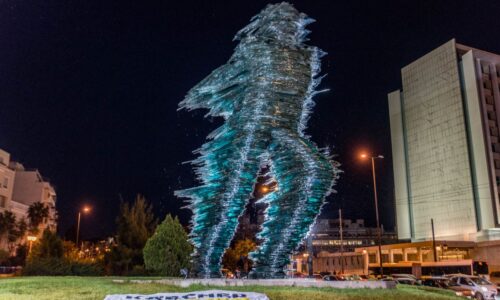 Tο γλυπτό «Δρομέας» απέναντι από το Χίλτον που έχει φιλοτεχνήσει...