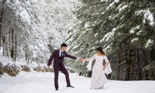 Οι νεόνυμφοι Πολύδωρος & Αγγελική φωτογραφίζονται στο χιόνι του Αίνου....