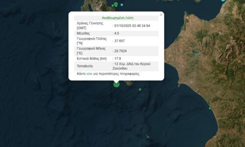 Σεισμική δόνηση μεγέθους 4.5 Ρίχτερ καταγράφηκε στις 05:49 τα ξημερώματα...