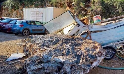 Χωρίς ευτυχώς σοβαρές ζημιές ένας τεράστιος βράχος, που αποκολλήθηκε από...