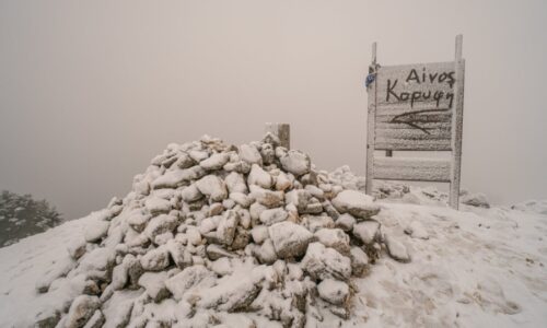 Ο καιρός «αγρίεψε» στην Κεφαλονιά αφού χιόνια έπεσαν στην κορυφή...