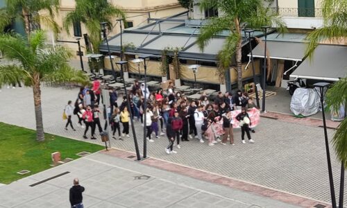Κρατώντας πανό και φωνάζοντας συνθήματα μαθητές από σχολεία του νησιού...