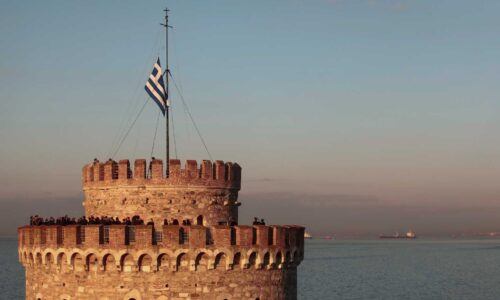 Στην τελετή έπαρσης της σημαίας στην κορυφή του Λευκού Πύργου...