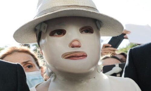 Με το πρόσωπό της καλυμμένο με μια ειδική, λευκή, πλαστική...