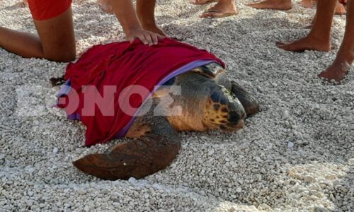 Μία ενήλικη αρσενική χελώνα καρέτα καρέτα βγήκε στην περίφημη παραλία του Μύρτου στην Κεφαλονιά το απόγευμα...