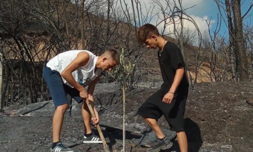 Εικόνα ελπίδας -Δύο 15χρονα παιδιά φυτεύουν συμβολικά μια ελιά στον καμένο λόφο της Αρχαίας Ολυμπίας