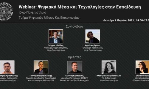 Το Τμήμα Ψηφιακών Μέσων και Επικοινωνίας του Ιονίου Πανεπιστημίου διοργανώνει ...