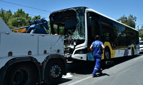 Λεωφορείο συγκρούστηκε με γερανό στη λεωφόρο Συγγρού στο ρεύμα προς...