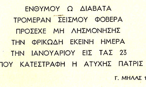 Σύντομος λόγος περί σεισμού, με αφορμή το μνημόσυνο στους νεκρούς του Εγκέλαδου του 1953 στο Ληξούρι