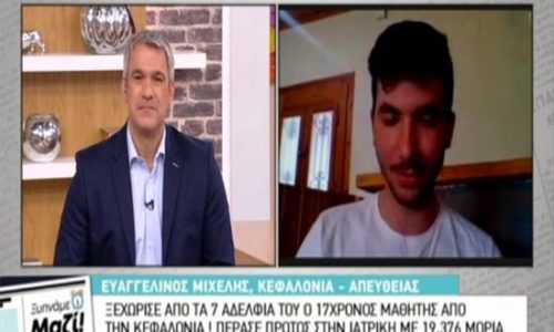 Ο Κεφαλονίτης Ευαγγελινός Μιχελής, που αρίστευσε στις Πανελλήνιες Εξετάσεις, συγκεντρώνοντας...