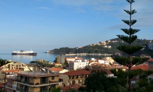 Ανοιξιάτικη φωτογραφία του "Νήσος Κεφαλονιά" καθώς μόλις μπαίνει στο λιμάνι...