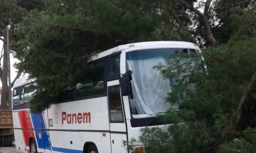 Ο δυνατός άνεμος ήταν η αιτία να πέσει πεύκο πάνω...