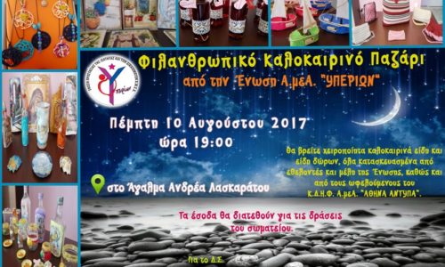 Φιλανθρωπικό Καλοκαιρινό Παζάρι από την Ένωση Α.μεΑ. "ΥΠΕΡΙΩΝ" την Πέμπτη 10 Αυγούστου...