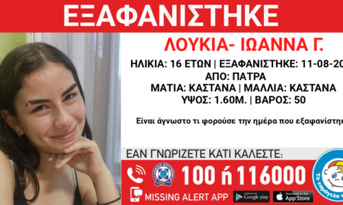 Στις 11/8/2025, πρώτες πρωινές ώρες εξαφανίστηκε από χώρο παιδικής προστασίας...