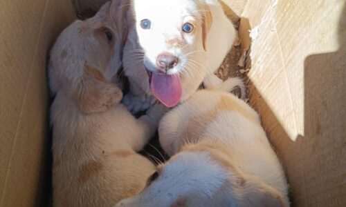 Τα εικονιζόμενα κουτάβια βρέθηκαν παρατημένα σε μία κούτα ανεβαίνοντας προς...