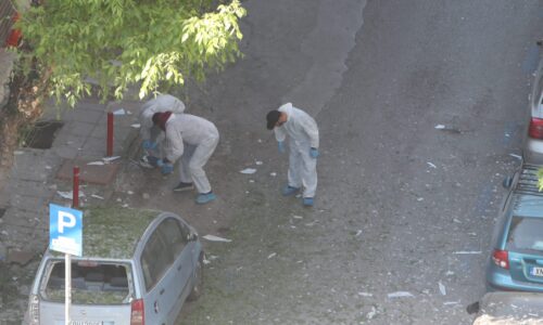 Σαρώνουν το σημείο οι πυροτεχνουργοί της Αστυνομίας, προκειμένου να συλλέξουν...