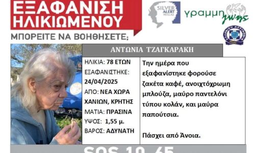 Σε χωράφι εντοπίστηκε σήμερα η 78χρονη γυναίκα, που είχε εξαφανιστεί...